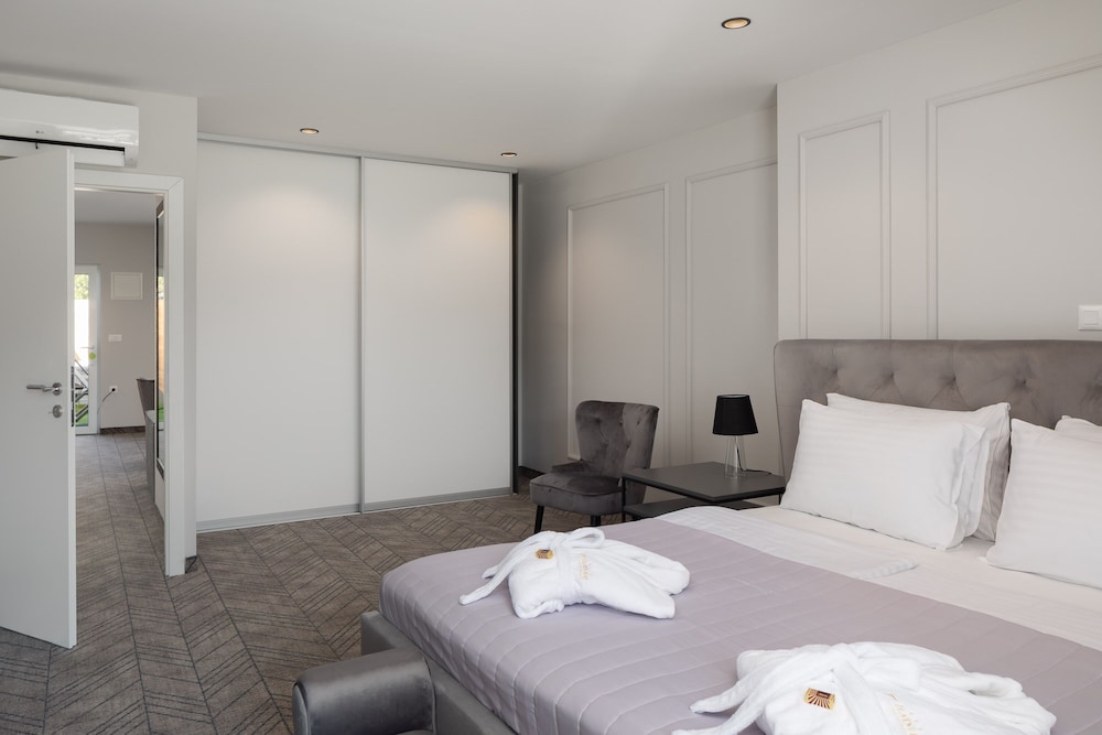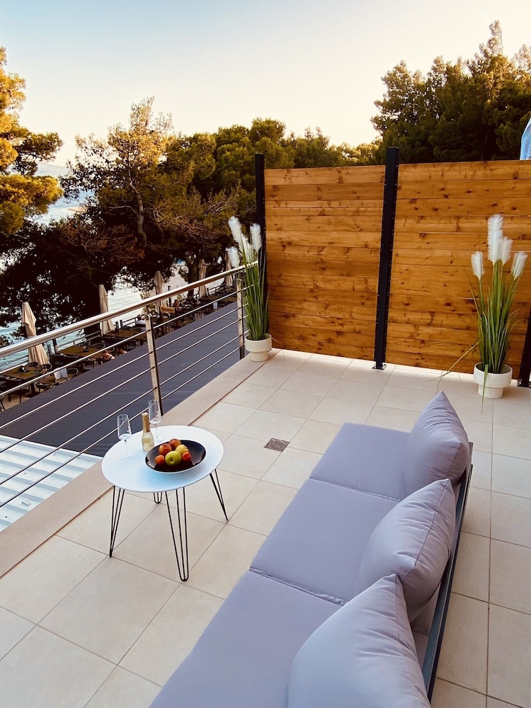 Overnatter du ved Zlatni rat Beach Resort, som ligger på stranden i Bol, er du kun få skridt fra Zlatni Rat-stranden og 3 minutters kørsel fra Stina Vingård. Dette hotel ved stranden ligger 2 km fra Dragehulen og 2 km fra Galerija Branislav Dešković. Føl dig hjemme i et af de 25 aircondition-afkølede værelser, der indeholder køleskab og fladskærms-tv. Med gratis Wi-Fi kan du altid komme på nettet, og kabelkanaler sørger for underholdningen. Værelset har et privat badeværelse med bruser samt gratis toiletartikler og hårtørrer. Faciliteter inkluderer telefoner samt pengeskabe og minibarer. De viste afstande er afrundet til nærmeste 0,1 kilometer.