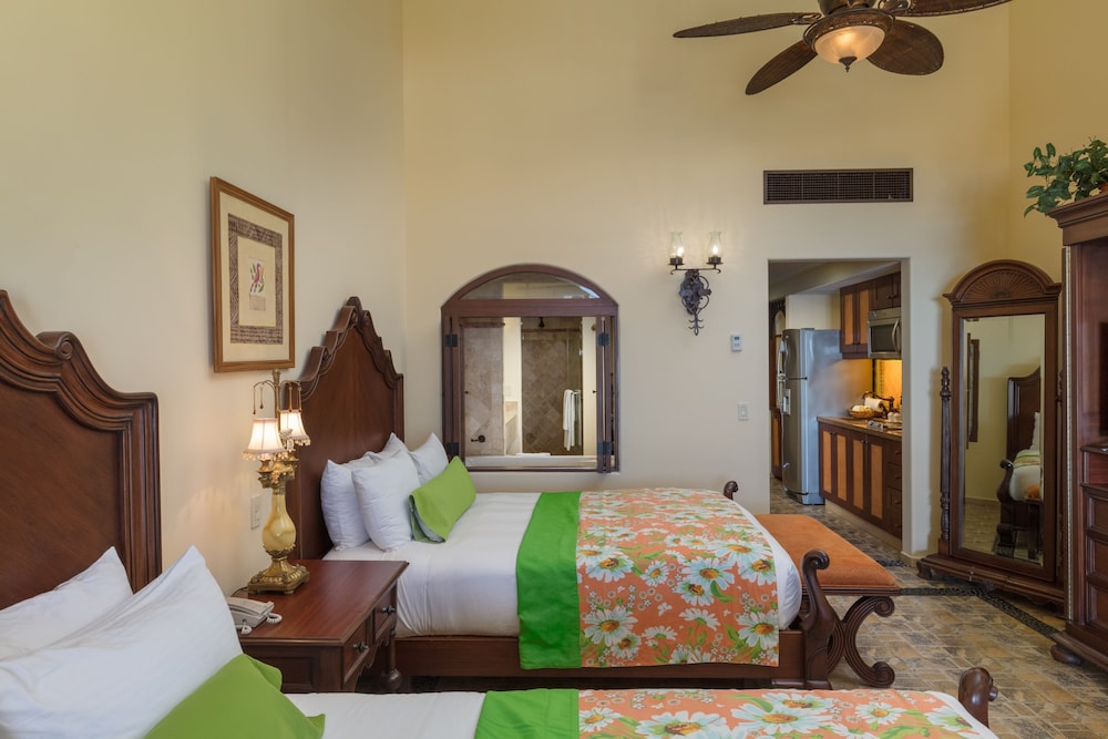 Hacienda Encantada Resort & Residences ligger ved havet i Los Cabos, kun 3 minutters kørsel fra Cabo del Sol Golf og 15 minutters kørsel fra Luxury Avenue. Dette hotel ved stranden ligger 6,3 km fra Santa Maria-stranden og 6,3 km fra Las Viudas Strand. Føl dig hjemme i et af de 222 værelser med individuelt design, der desuden har dvd-afspiller og plasma-tv. Værelserne har privat møbleret balkon eller terrasse. Med gratis Wi-Fi kan du altid komme på nettet, og digitale kanaler sørger for underholdningen. Værelset har et privat badeværelse med hårtørrer og badekåbe. De viste afstande er afrundet til nærmeste 0,1 kilometer.