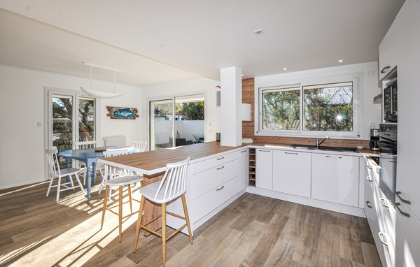 Dette skønne dobbelthus i Canet Plage med en velholdt terrasse og en rolig beliggenhed i udkanten af dette populære feriested er den ideelle bolig til jeres pause. Den smukke sandstrand ligger kun en kort gåtur væk, ideel til daglige strandbesøg. Den moderne og lyse stue er udstyret med stilfulde møbler og store vinduespartier, der skaber en behagelig stemning. Det åbne køkken med morgenmadsbar lægger op til at tilberede lækre måltider. Nyd disse i den tilstødende spiseplads med udsigt over haven. For sportslig variation er der et bordtennisrum i feriehuset. Eller start jeres dag med morgenmad på den solrige terrasse. Brug de komfortable liggestole til at solbade eller slappe af med en bog i skyggen af træerne. Til fælles måltider byder udendørsområdet på et spisebord, hvor I kan nyde de lune aftener med god mad og et glas vin. Tag på udflugter rundt i den maleriske Cote Vermeille. Besøg de livlige markeder i Canet Plage, udforsk Perpignan eller oplev regionens naturlige skønhed.