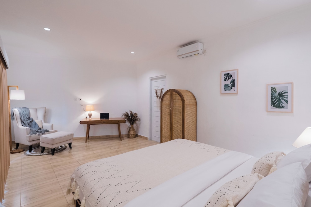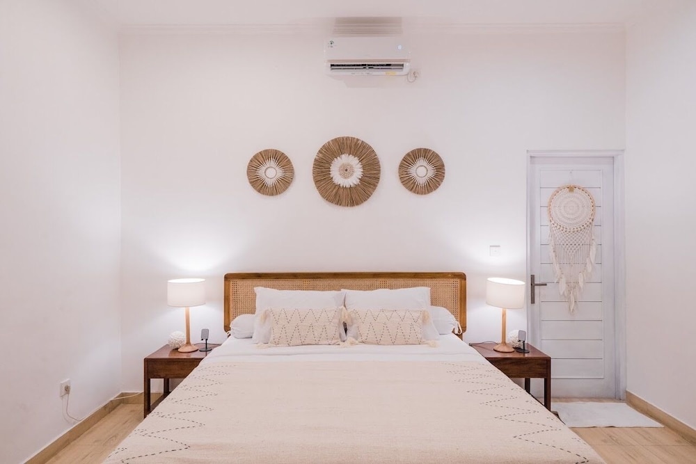 Fra Villa Leya & Leon Canggu - Private 3BR Villa with Pool i Canggu (Batu Bolong) er der kun 10 minutters kørsel til Canggu Beach og Spisegaden. Denne villa ligger 13,5 km fra Kuta Strand og 20 km fra Sanur Strand. Forkæl dig selv med et ophold i et af de 3 værelser, der er indrettet med individuelt design, og som desuden indeholder private pools og fladskærms-tv. Værelserne har privat balkon eller terrasse. Der er et køkken til rådighed, som er udstyret med køleskab/fryser i fuld størrelse og opvaskemaskine. Med gratis Wi-Fi kan du altid komme på nettet, og satellitkanaler sørger for underholdningen. De viste afstande er afrundet til nærmeste 0,1 kilometer.