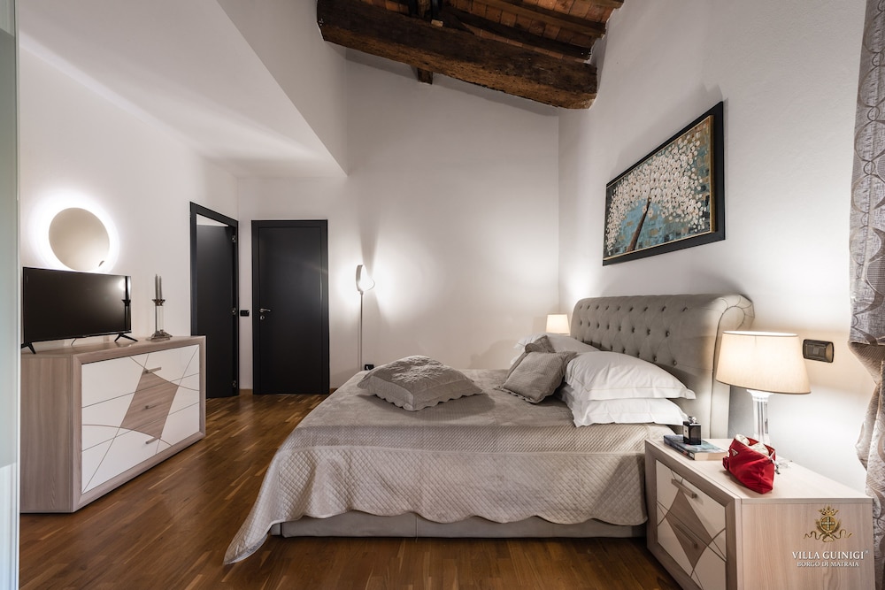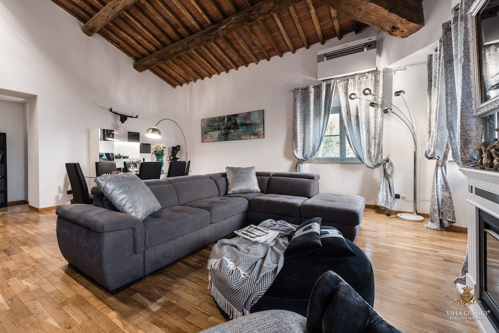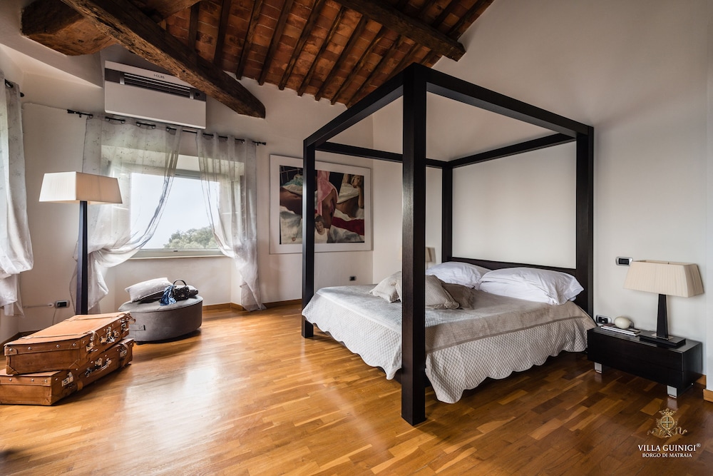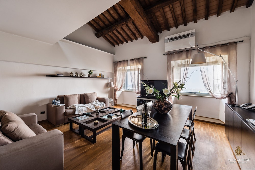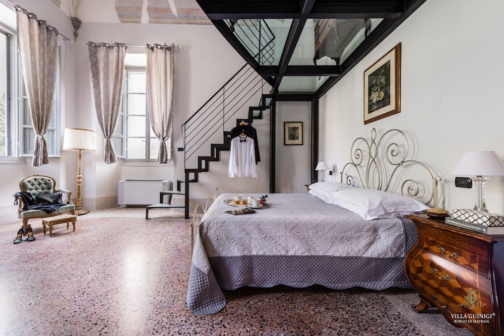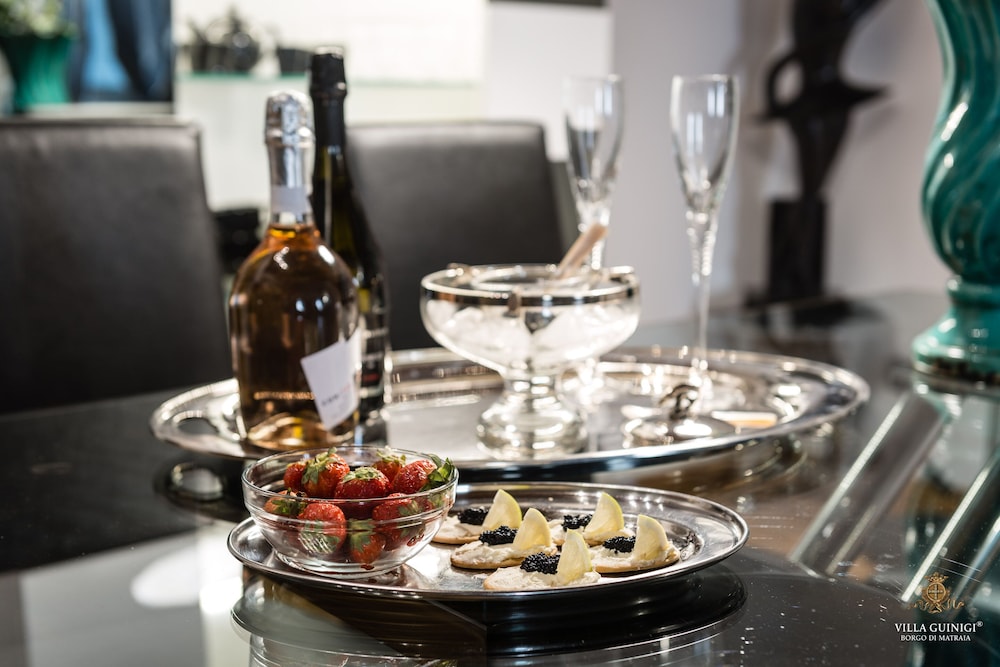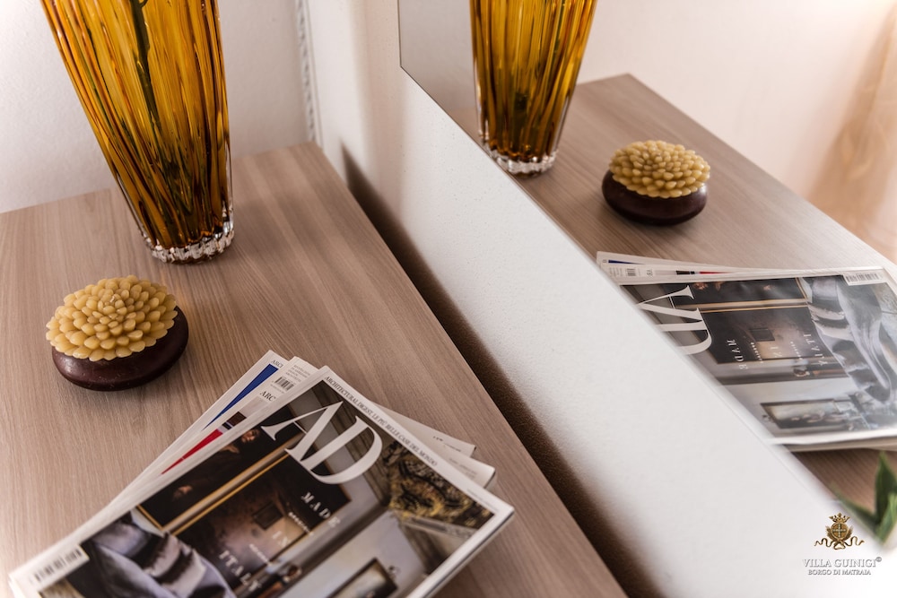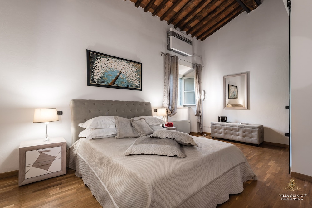 Overnatter du ved VILLA GUINIGI EXCLUSIVE RESIDENCE & POOL, som ligger i et område med direkte forbindelse til konferencecentret i Capannori, er du kun 5 minutters kørsel fra Villa Reale og Villa Grabau. Denne kro med familievenlig profil ligger 5,7 km fra Villa Mansi og 6,5 km fra Santa Maria Assunta-sognekirken. Føl dig hjemme i et af de 6 værelser, der er indrettet med individuelt design, og som desuden indeholder køkken med køleskab/fryser i fuld størrelse og ovn. Din seng er udstyret med dundyner og premium-sengetøj. Der er et 32-tommers smart-tv med digitale kanaler, som sørger for underholdningen, og med gratis Wi-Fi kan du altid komme på nettet. Faciliteter inkluderer pengeskabe og skriveborde, og rengøring udføres ugentligt. De viste afstande er afrundet til nærmeste 0,1 kilometer.