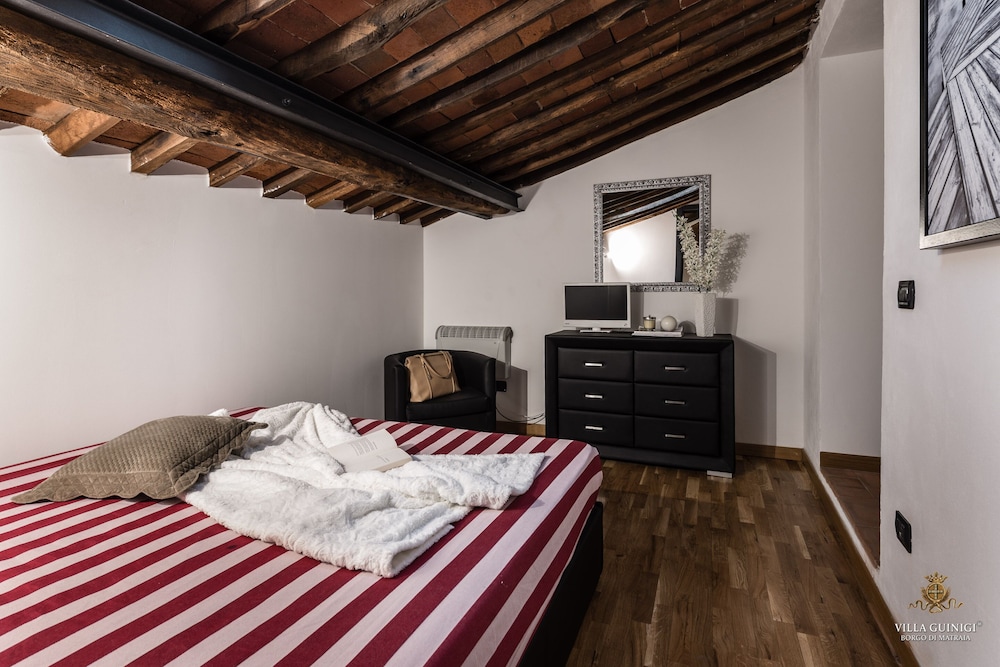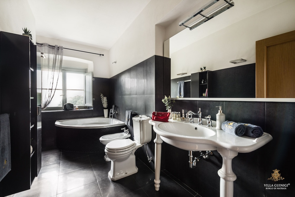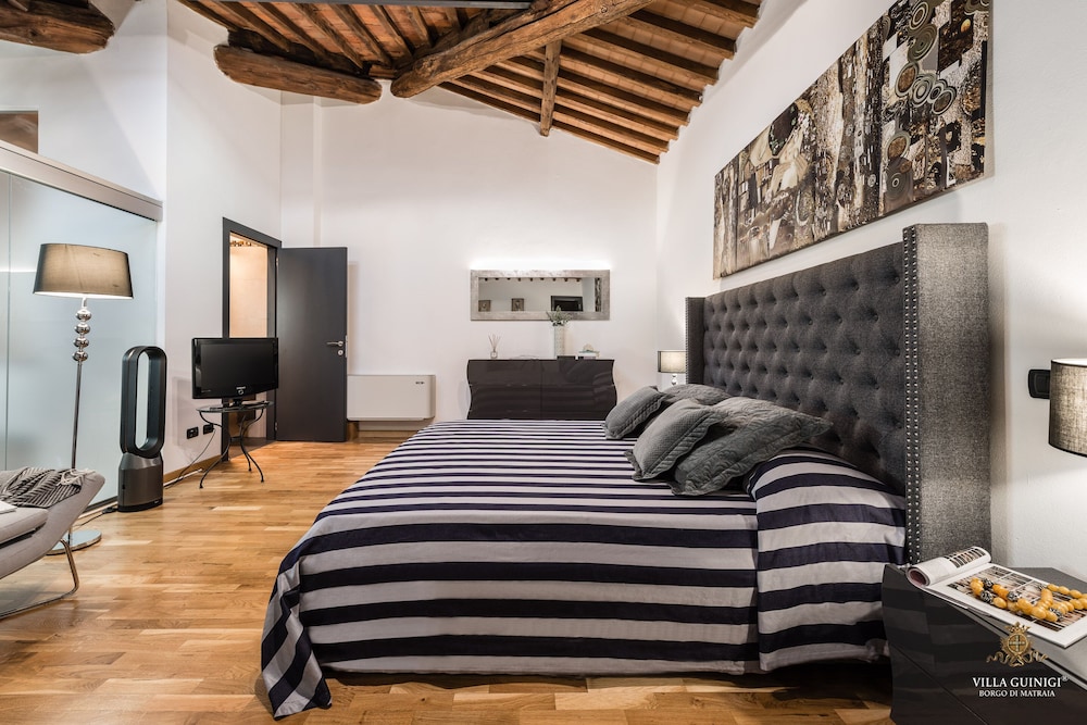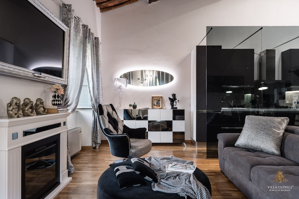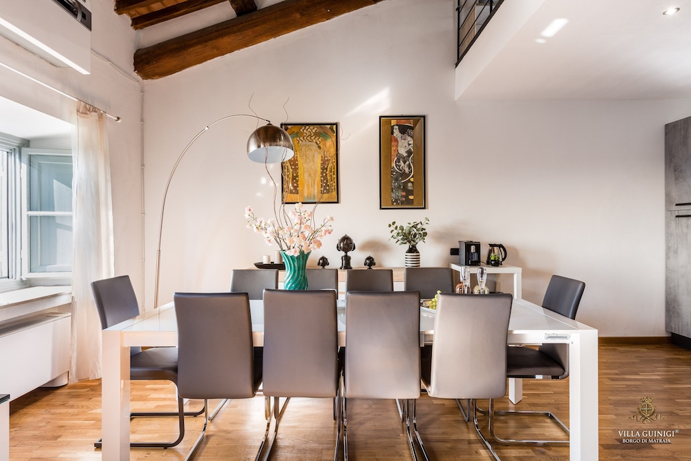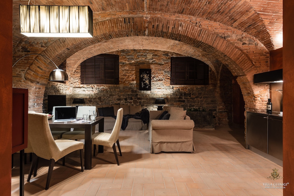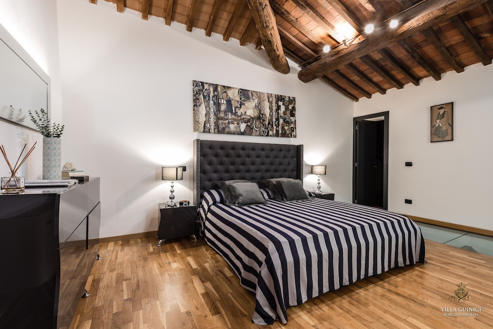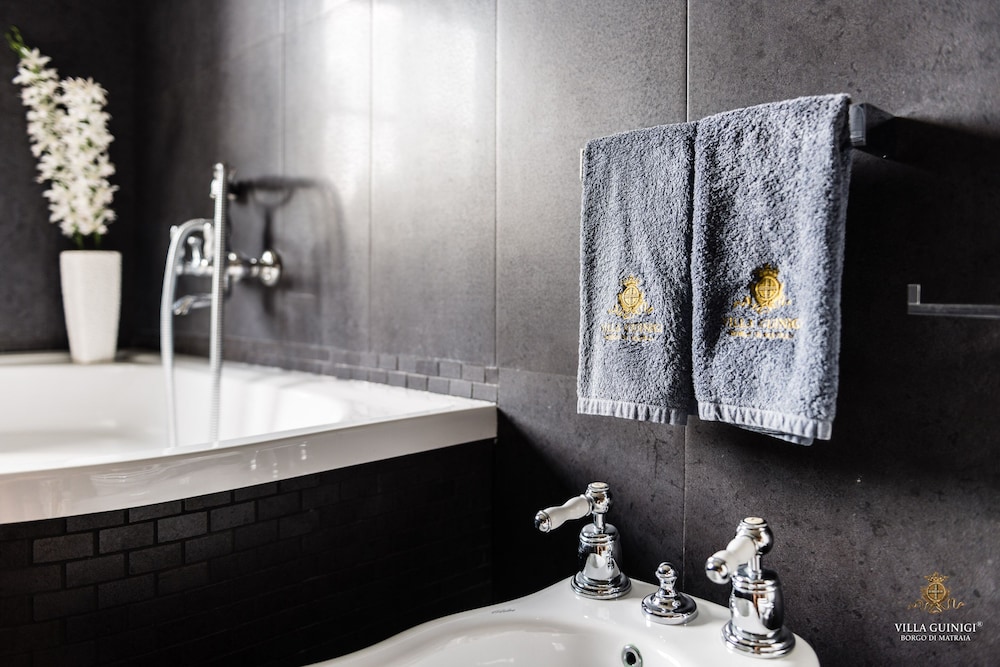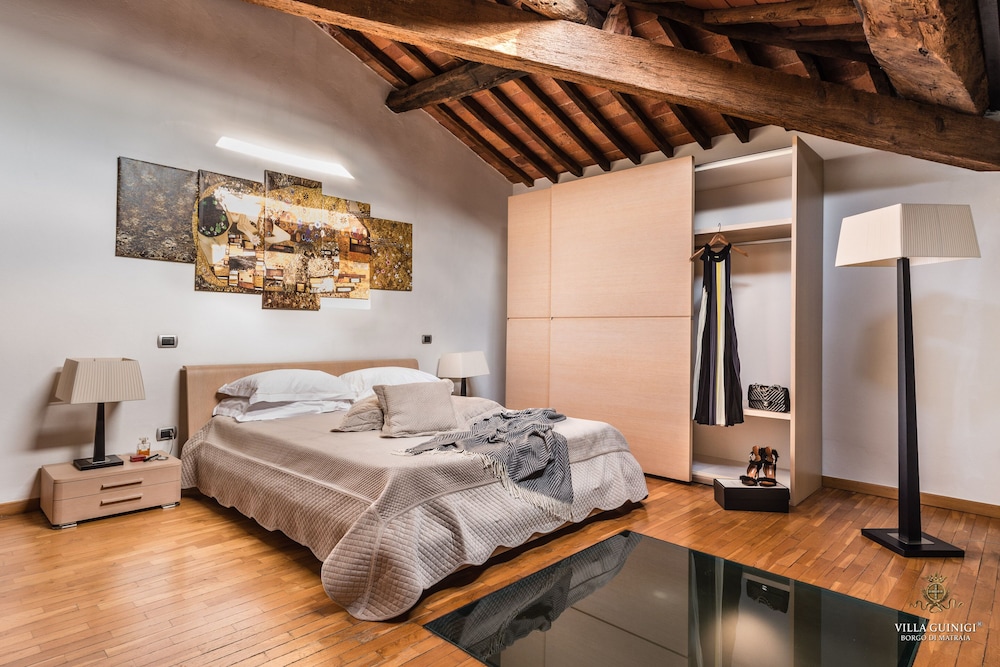 Overnatter du ved VILLA GUINIGI EXCLUSIVE RESIDENCE & POOL, som ligger i et område med direkte forbindelse til konferencecentret i Capannori, er du kun 5 minutters kørsel fra Villa Reale og Villa Grabau. Denne kro med familievenlig profil ligger 5,7 km fra Villa Mansi og 6,5 km fra Santa Maria Assunta-sognekirken. Føl dig hjemme i et af de 6 værelser, der er indrettet med individuelt design, og som desuden indeholder køkken med køleskab/fryser i fuld størrelse og ovn. Din seng er udstyret med dundyner og premium-sengetøj. Der er et 32-tommers smart-tv med digitale kanaler, som sørger for underholdningen, og med gratis Wi-Fi kan du altid komme på nettet. Faciliteter inkluderer pengeskabe og skriveborde, og rengøring udføres ugentligt. De viste afstande er afrundet til nærmeste 0,1 kilometer.