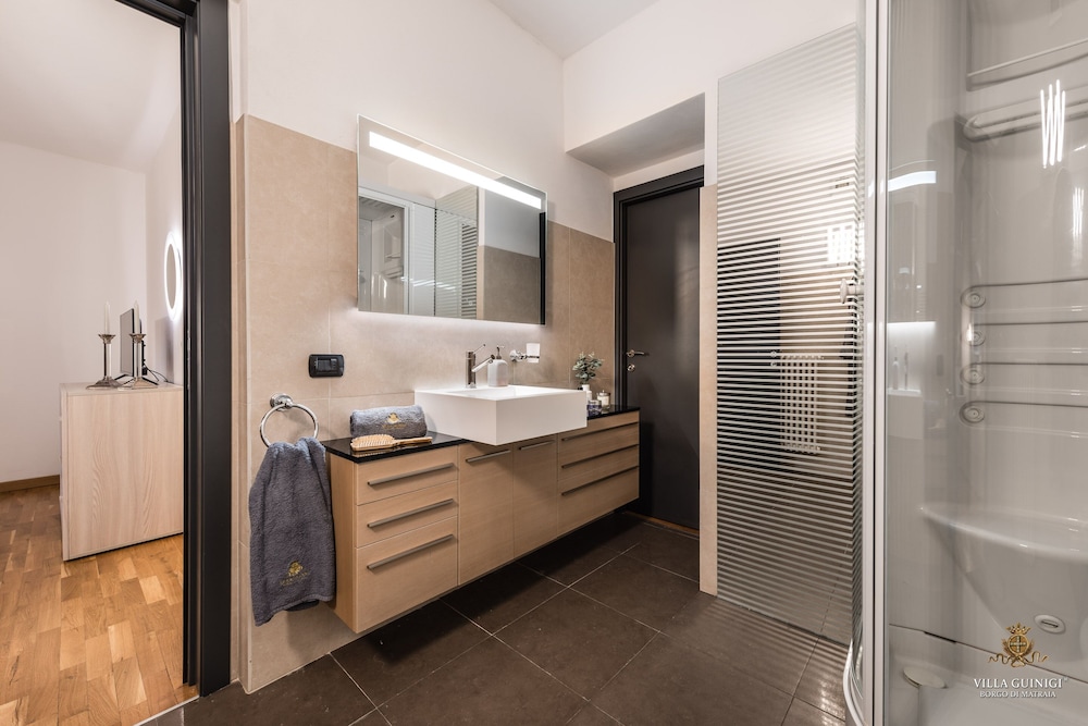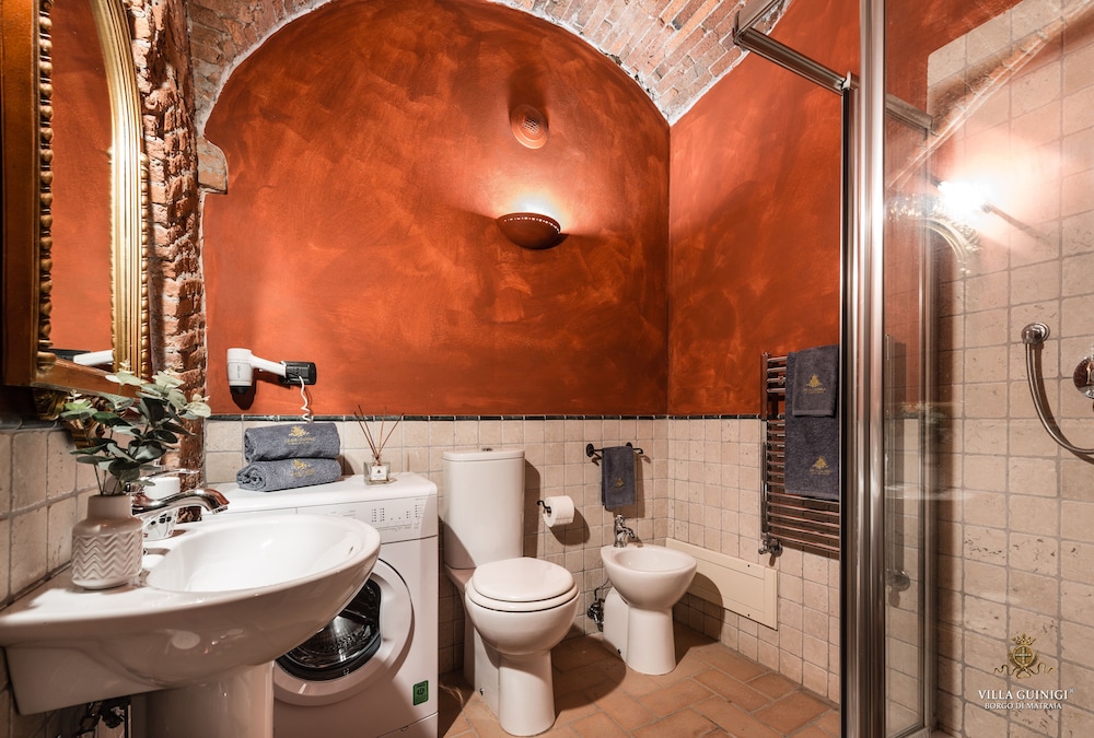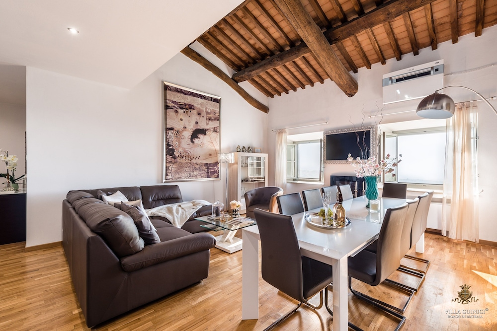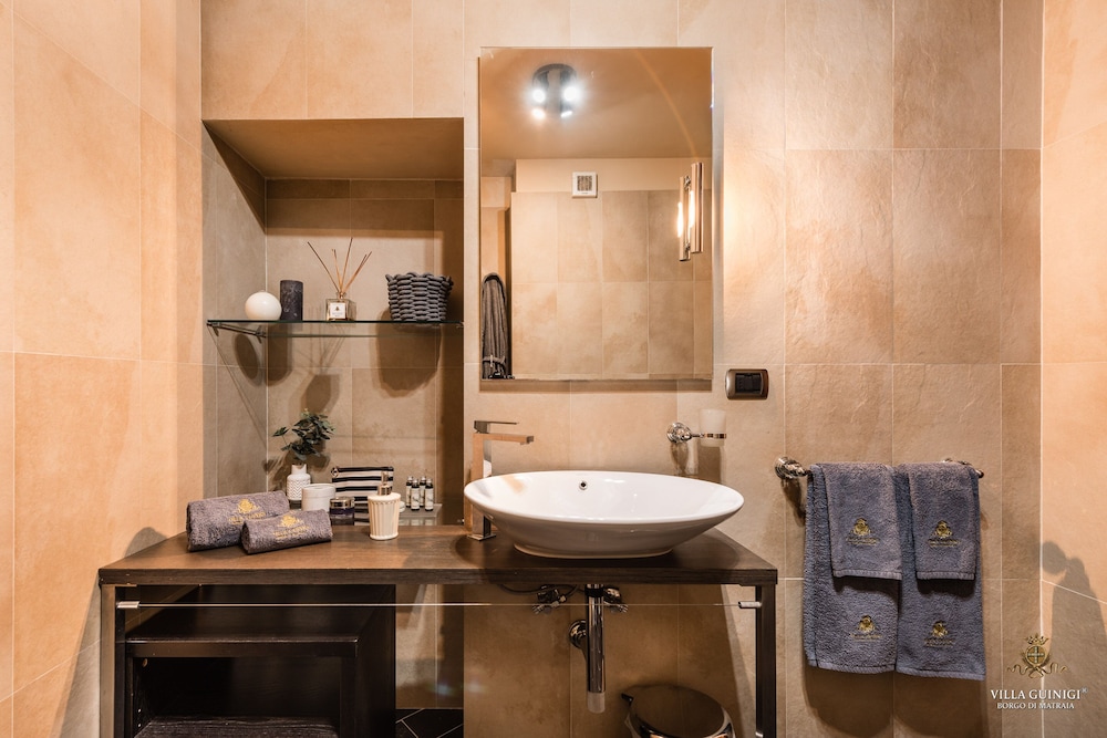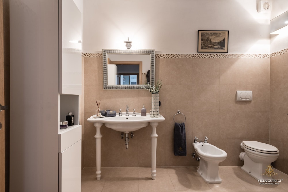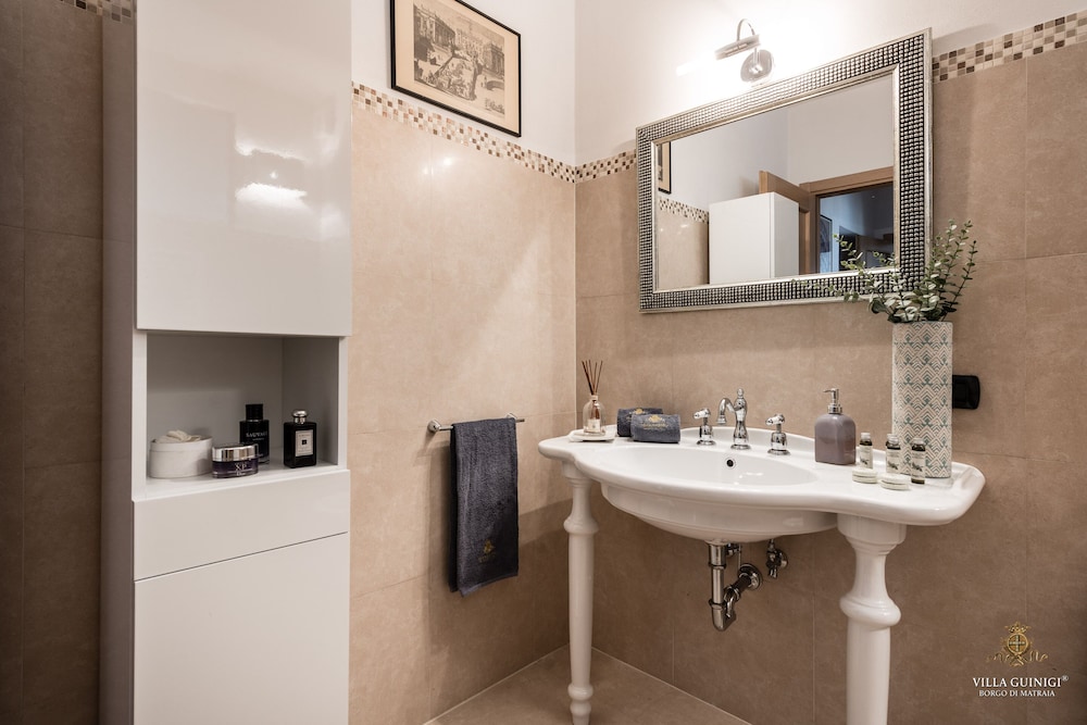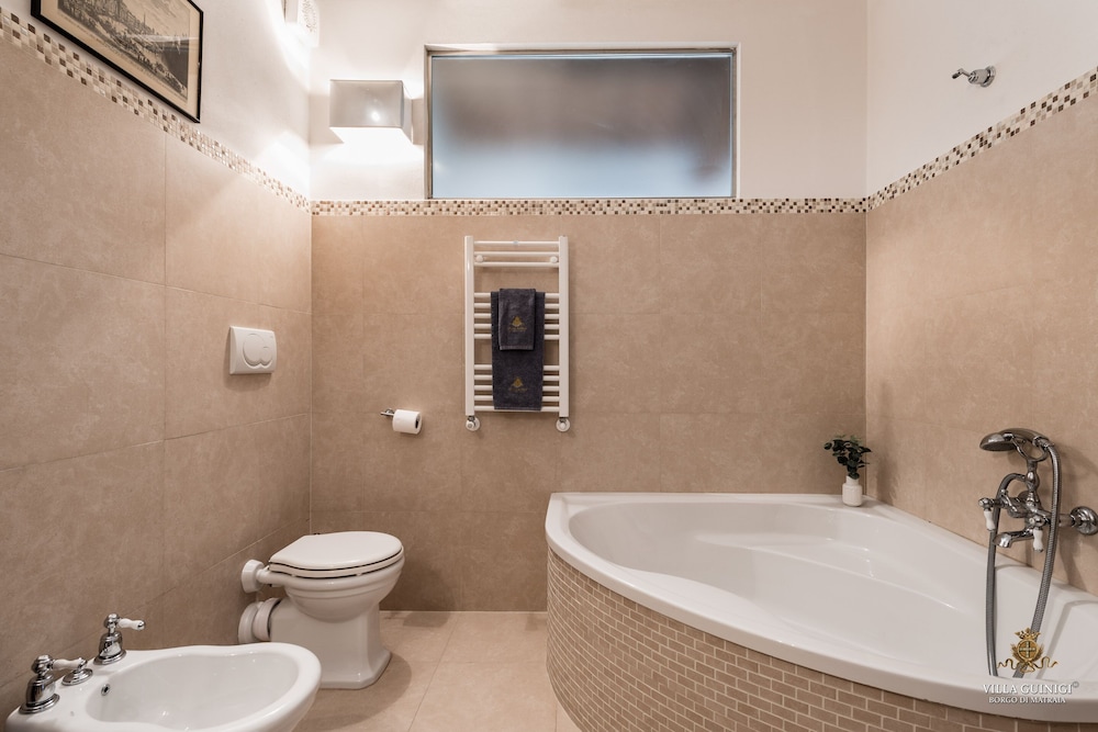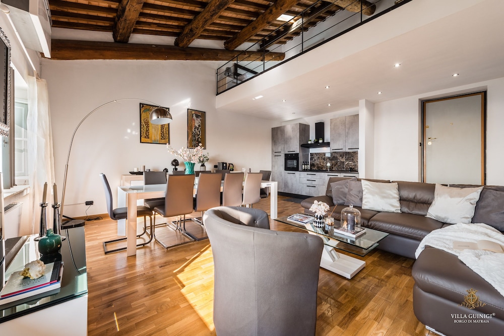 Overnatter du ved VILLA GUINIGI EXCLUSIVE RESIDENCE & POOL, som ligger i et område med direkte forbindelse til konferencecentret i Capannori, er du kun 5 minutters kørsel fra Villa Reale og Villa Grabau. Denne kro med familievenlig profil ligger 5,7 km fra Villa Mansi og 6,5 km fra Santa Maria Assunta-sognekirken. Føl dig hjemme i et af de 6 værelser, der er indrettet med individuelt design, og som desuden indeholder køkken med køleskab/fryser i fuld størrelse og ovn. Din seng er udstyret med dundyner og premium-sengetøj. Der er et 32-tommers smart-tv med digitale kanaler, som sørger for underholdningen, og med gratis Wi-Fi kan du altid komme på nettet. Faciliteter inkluderer pengeskabe og skriveborde, og rengøring udføres ugentligt. De viste afstande er afrundet til nærmeste 0,1 kilometer.