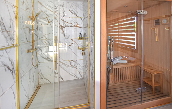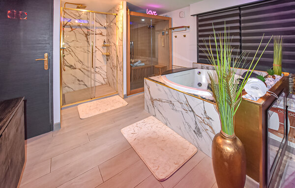 Dette rummelige og eksklusive feriehus, beliggende i rolige omgivelser, tilbyder det ideelle tilflugtssted til at tilbringe dejlige, afslappende dage sammen. Forkæl hinanden med jeres yndlingsretter, planlæg jeres aktiviteter og forkæl jer selv med nogle forkælende øjeblikke i saunaen eller spabadet efter en begivenhedsrig dag.