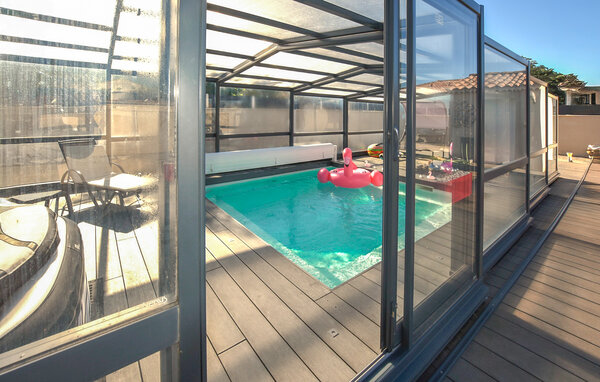 I kan bruge jeres private pool indendørs eller udendørs, afhængigt af vejret. Slap af på de behagelige liggestole og lad udsigten over Mont Ventoux fortrylle jer med et glas vin på tagterrassen.