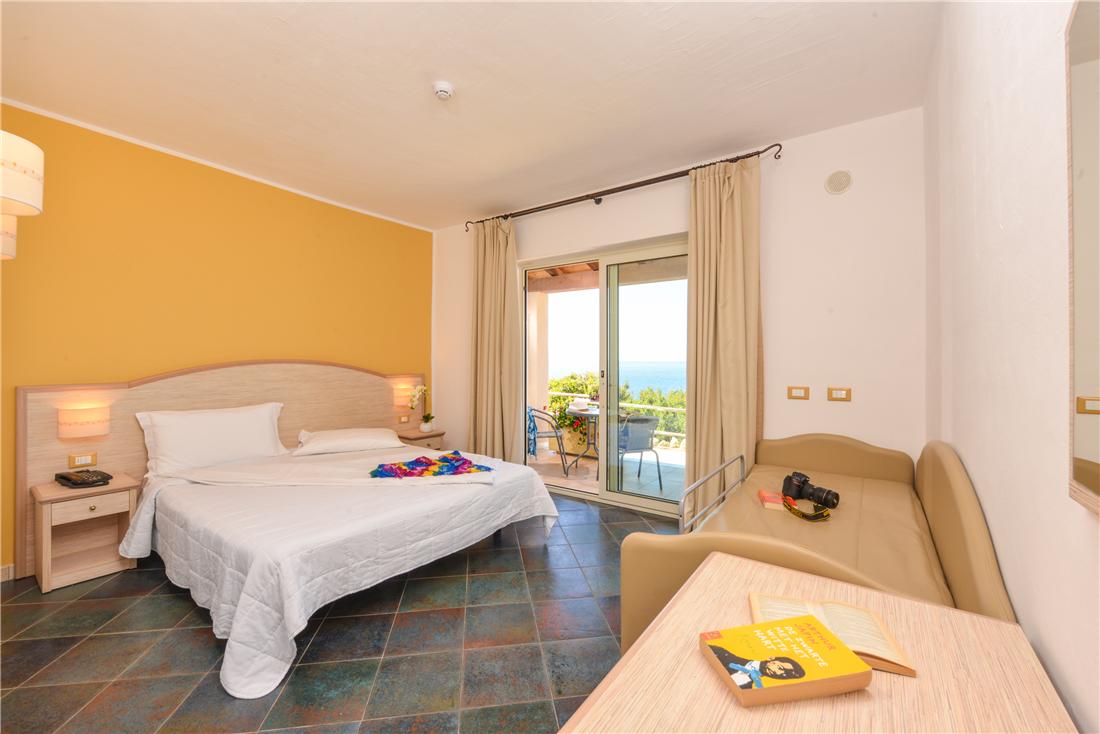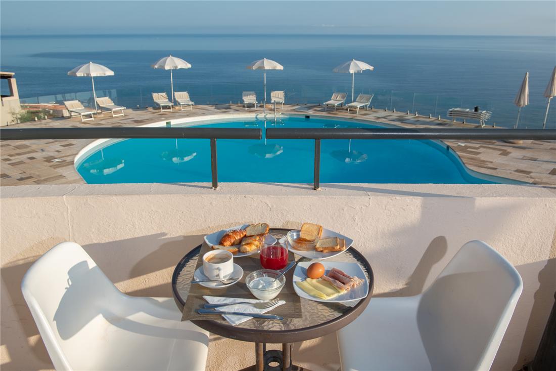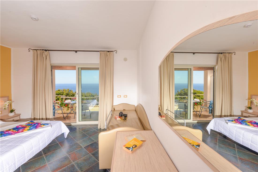 Uanset om du foretrækker en udsigt over det glitrende hav, de mægtige bjerge eller de frodige haver, finder du det helt rigtige værelse på hotellet. Alle værelser er indrettet i bløde og livlige farver, har en egen indgang og balkon/veranda med tilhørende bord og stole. På værelset nyder du faciliteter såsom aircondition, badeværelse med hårtørrer, pengeboks, køleskab og TV. Aircondition, pengeskab, TV, hårtørrer, bruser og toilet. Altan.