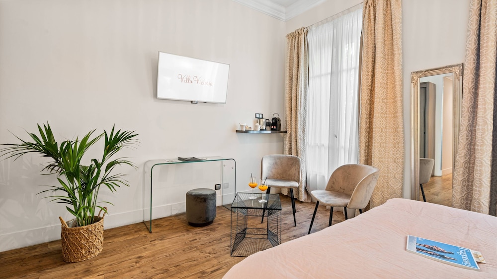 Med et ophold ved Villa Victoria befinder du dig i hjertet af Nice, kun 10 minutters gang fra Promenade des Anglais og Negresco Hotel. Dette hotel ligger 0,8 km fra Place Massena og 3,6 km fra Nice Marina. Føl dig hjemme i et af de 38 værelser, der indeholder minibar og espressomaskine. Med gratis Wi-Fi kan du altid komme på nettet. Værelset har et privat badeværelse med gratis toiletartikler og hårtørrer. Faciliteter inkluderer pengeskabe og skriveborde, og rengøring udføres dagligt. De viste afstande er afrundet til nærmeste 0,1 kilometer.