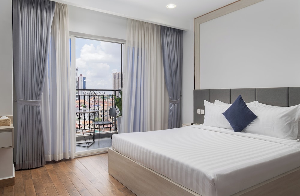 Med et ophold ved Amana Hotel & Residences har du en central base i Phnom Penh, kun 10 minutters kørsel fra Kongeslottet og Riverside. Dette lejlighedshotel ligger 0,4 km fra Sovanna Phum Kunstforening og Kunstgalleri og 0,4 km fra Sovanna Phum teater. Føl dig hjemme i et af de 45 aircondition-afkølede værelser, der indeholder pejse og gulvvarme. Der er et tekøkken til rådighed, som er udstyret med køleskab, ovn og opvaskemaskine. Der er et 21-tommers smart-tv med kabelkanaler, som sørger for underholdningen, og med gratis Wi-Fi kan du altid komme på nettet. Faciliteter inkluderer skriveborde og separate siddeområder, og rengøring udføres dagligt. De viste afstande er afrundet til nærmeste 0,1 kilometer.