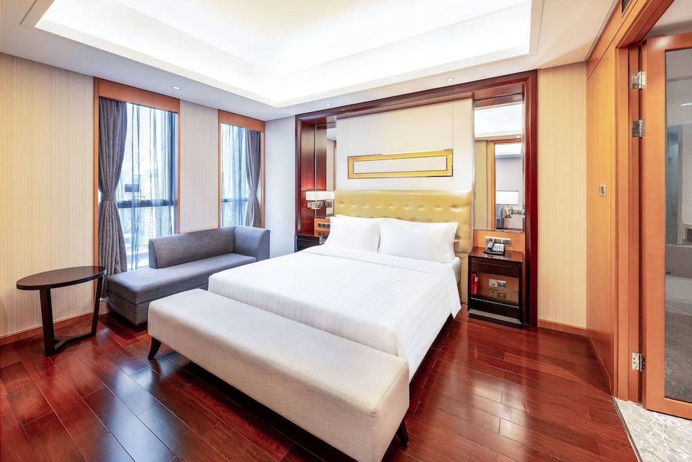 Med et ophold ved Lia Chengdu Hotel har du en central base i Chengdu, kun 5 minutters kørsel fra Taikoo Li Shoppingcenter og Tianfu-pladsen. Dette hotel ligger 0,9 km fra Sichuan Museum for Videnskab og Teknologi og 1,2 km fra Folkets Park. Føl dig hjemme i et af de 242 aircondition-afkølede værelser, der indeholder køleskab og minibar. Din seng har topmadras og er udstyret med dundyner og premium-sengetøj. Der er gratis internetforbindelse via kabel og Wi-Fi, og et LCD-tv med satellitkanaler sørger for underholdningen. Badeværelserne indeholder badekar eller bruser med brusehoved med spredningseffekt og gratis toiletartikler. De viste afstande er afrundet til nærmeste 0,1 kilometer.