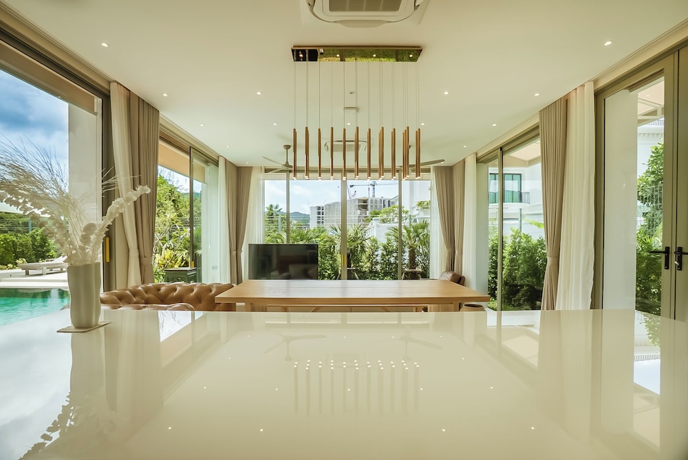 Overnatter du ved Akal Pool Villa 3BR near Laguna, Bangtao & Beach, som ligger i et shoppingområde i Choeng Thale, er du kun 15 minutters kørsel fra Bang Tao Strand og Surin Strand. Denne villa ligger 8,5 km fra Kamala Strand og 16,4 km fra Patong Strand. Føl dig hjemme i et af de 2 aircondition-afkølede værelser. Med gratis Wi-Fi kan du altid komme på nettet. Værelset har et privat badeværelse med gratis toiletartikler og hårtørrer. Faciliteter inkluderer pengeskabe med plads til bærbar computer og vaskemaskiner/tørretumblere, og du kan desuden anmode om strygejern/strygebræt. De viste afstande er afrundet til nærmeste 0,1 kilometer.