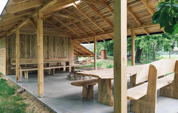 Glæd jer til jeres ferie i dette charmerende feriehus, som byder jer velkommen med sin rustikke hygge. Start dagen med en afslappet morgenmad på den overdækkede terrasse, og nyd den rolige, landlige atmosfære. De åbne marker omkring huset danner en idyllisk ramme for gåture eller cykelture i naturen. Feriehuset har en hyggelig stue med en komfortabel sofa og en pejs, som sikrer hyggelige aftener.