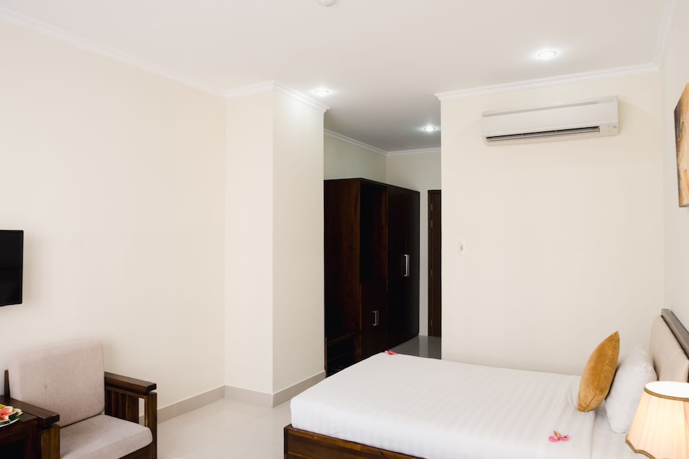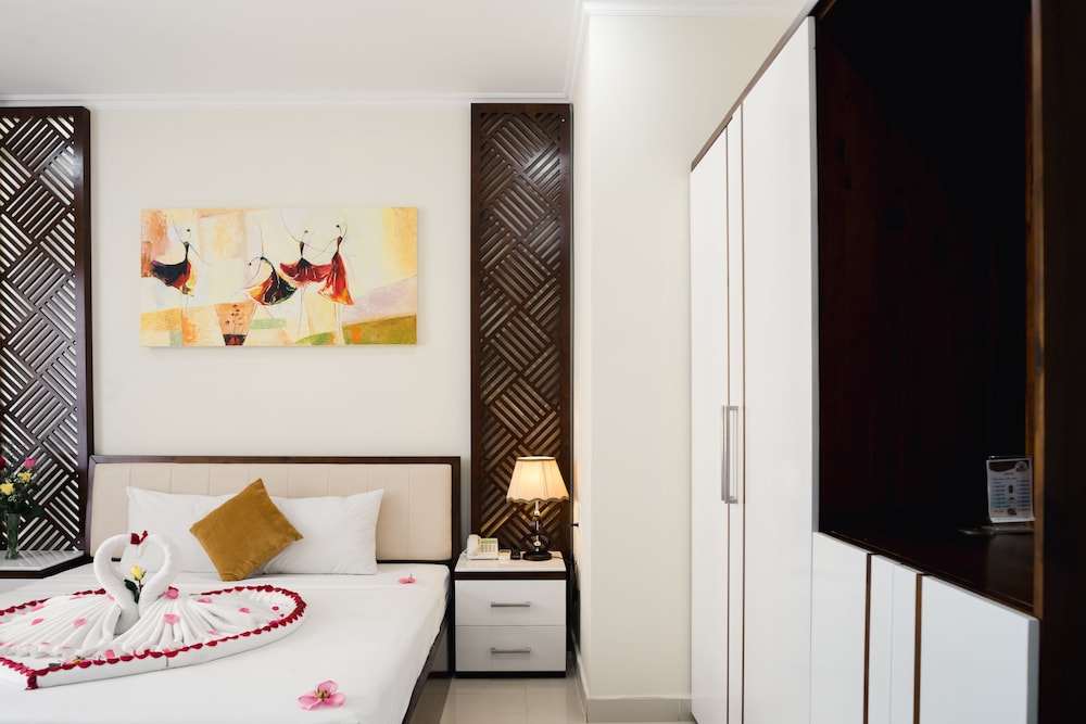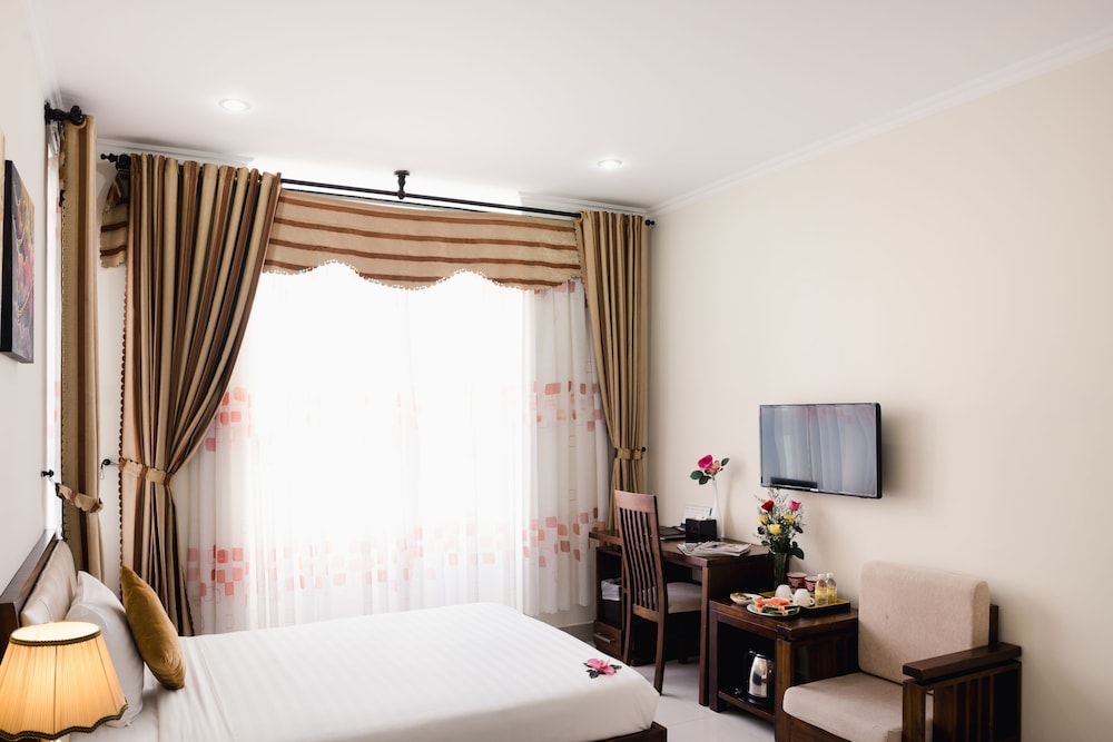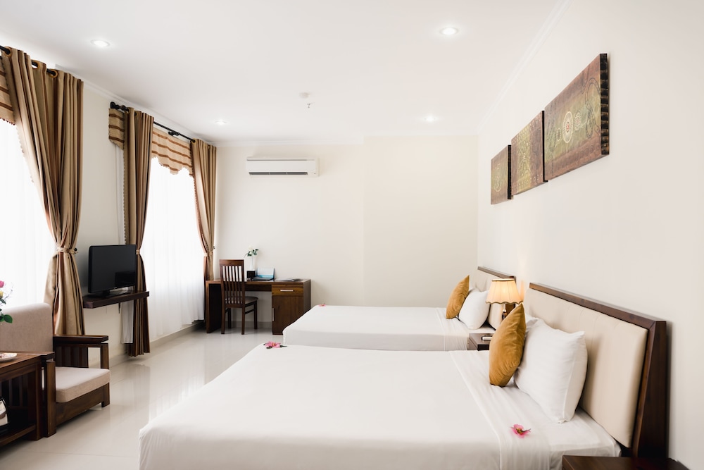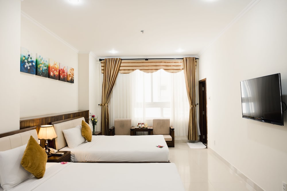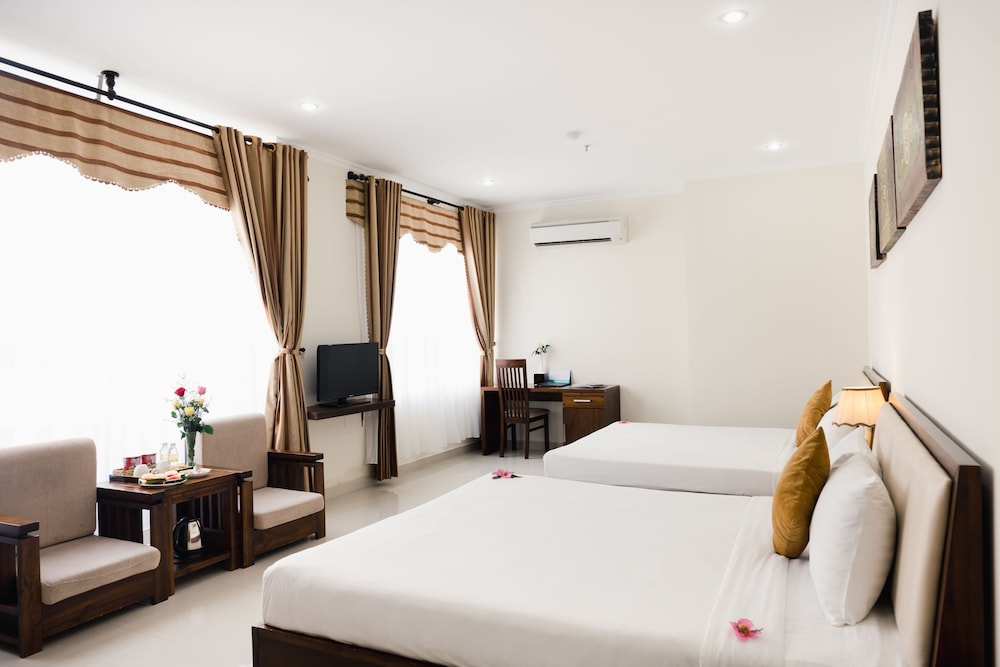 Fra Truong Son Tung 2 Hotel i Da Nang (Sơn Trà) er der kun 4 minutters gang til My Khe Strand og 5 minutters kørsel til Dragebroen. Dette hotel ligger 2,1 km fra Han River og 3,2 km fra Da Nang Katedral. Føl dig hjemme i et af de 66 aircondition-afkølede værelser, der indeholder minibar og fladskærms-tv. Med gratis Wi-Fi kan du altid komme på nettet, og kabelkanaler sørger for underholdningen. Værelset har et privat badeværelse med bruser samt gratis toiletartikler og hårtørrer. De viste afstande er afrundet til nærmeste 0,1 kilometer.