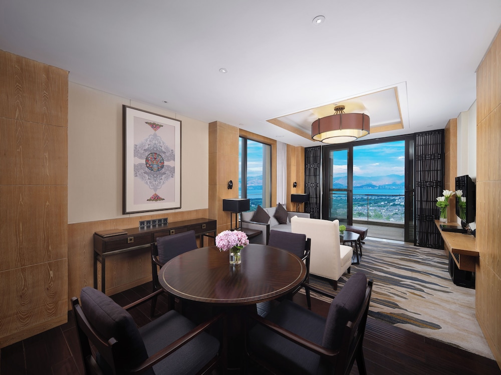 Gæsterne har blandt andet adgang til et forretningscenter, renseri/vaskeservice og en døgnåben reception. Planlægger du et arrangement i Dali? På dette resort er der lokaler til rådighed på 1100 kvadratmeter, inklusive konferencelokaler. Lufthavnstransport tur-retur er til rådighed mod et tillægsgebyr (døgnet rundt), og gratis selvstændig parkering findes desuden på stedet. Der tilbydes fuld spaservice, hvor du kan nyde massage. Du vil helt sikkert værdsætte de rekreative faciliteter, som omfatter en indendørs pool, et dampbad og et fitnesscenter. Andre faciliteter på dette resort i art deco-stil inkluderer gratis trådløs internetadgang, concierge-tjenester og spillehal/spillerum. Det er nemt at komme omkring og besøge nærliggende destinationerne med den gratis transportservice. Få en bid mad på Spices All Day Dinning, som er en af 3 restauranter på dette resort, eller bliv på værelset, og nyd godt af roomservice døgnet rundt Tag forbi baren ved poolen samt de 3 barer/lounger, hvor du kan slappe af med en forfriskende drink. Morgenmadsbuffet serveres på hverdage fra kl. 06.30 til kl. 10.30 mod et tillægsgebyr. Overnatningsstedets klasse, der kommer fra vores bedømmelsessystem, er baseret på overnatningsstedets type, faciliteter og tjenester.- Gebyr for morgenmadsbuffet: 198 CNY pr. person (cirkapriser)