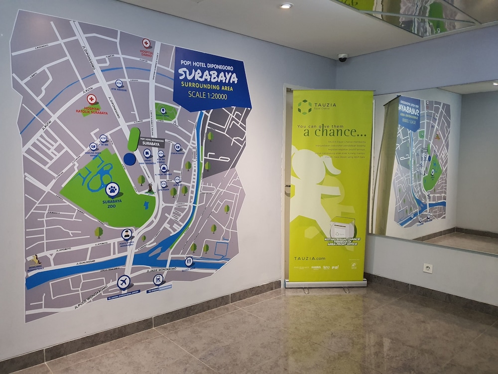 Med et ophold ved POP! Hotel Diponegoro Surabaya i Surabaya (Surabaya Center) er du kun 5 minutters kørsel fra Tunjungan-pladsen og Mpu Tantular-museet. Dette hotel ligger 0,7 km fra House of Sampoerna og 1,1 km fra Surabaya-bytorvet. Overnat i et af de 116 værelser, der indeholder fladskærms-tv. Et tv med kabelkanaler sørger for underholdningen. Der er bruser på badeværelserne. Faciliteter inkluderer pengeskabe og sovesofaer, og rengøring udføres dagligt. De viste afstande er afrundet til nærmeste 0,1 kilometer.