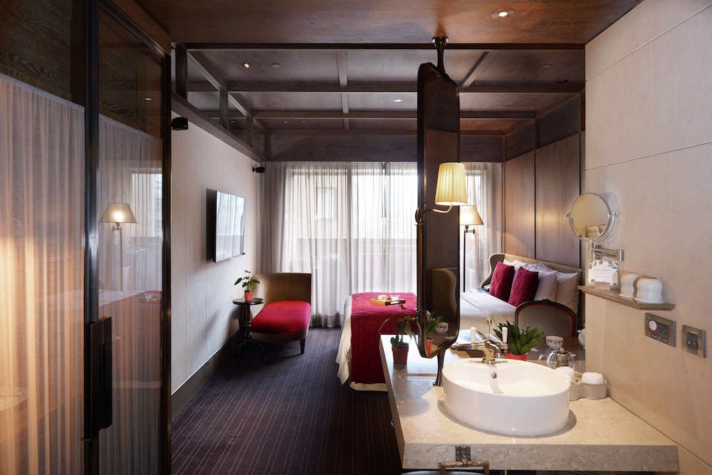 Med et ophold hos Palais de Chine Hotel har du en central base i Taipei, kun få skridt fra Q-pladsen og 10 minutters gang fra Ningxia Nattemarked. Dette hotel med luksusfaciliteter ligger 2,7 km fra National Taiwan Democracy Memorial Hall og 3,7 km fra Taipei-arenaen. Føl dig hjemme i et af de 275 aircondition-afkølede værelser, der indeholder minibar og fladskærms-tv. Med gratis Wi-Fi kan du altid komme på nettet, og satellitkanaler sørger for underholdningen. Værelset har et privat badeværelse med gratis toiletartikler og hårtørrer. Faciliteter inkluderer telefoner samt pengeskabe og skriveborde. De viste afstande er afrundet til nærmeste 0,1 kilometer.
