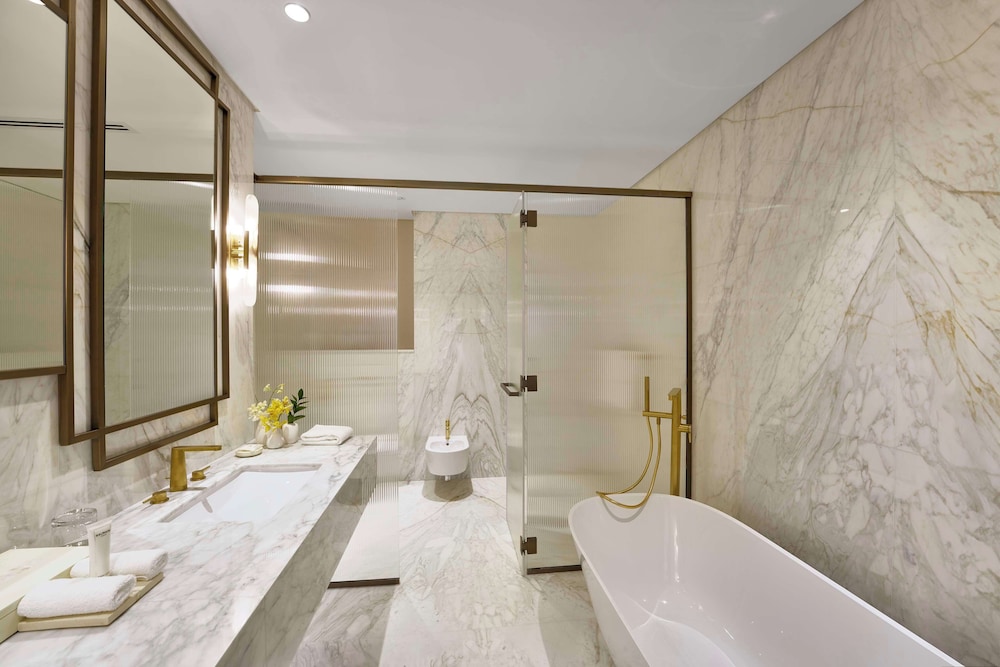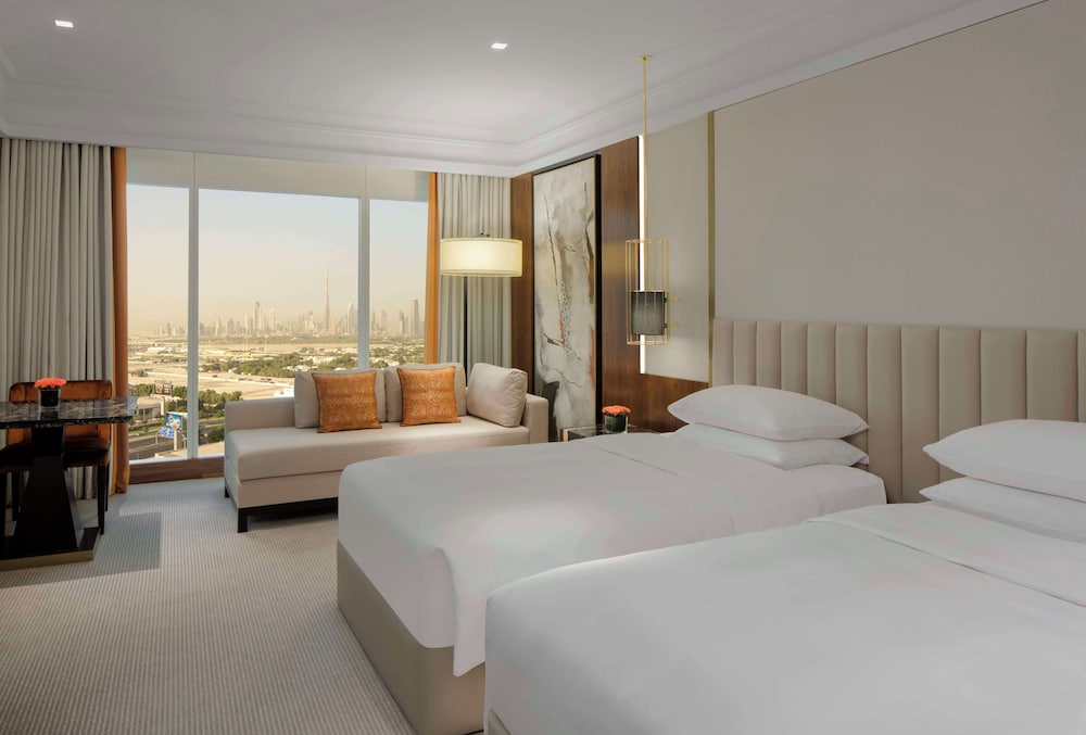 Med et ophold ved Grand Hyatt Dubai i Dubai (Bur Dubai) er du kun 4 minutters kørsel fra Dubai Creek og 6 minutters kørsel fra Dubai Frame. Dette hotel med familievenlig profil ligger 5 km fra City Centre Deira og 6,1 km fra Zabeel Park. Føl dig hjemme i et af de 710 aircondition-afkølede værelser, der indeholder minibar og fladskærms-tv. Med gratis Wi-Fi kan du altid komme på nettet, og satellitkanaler sørger for underholdningen. Værelset har et privat badeværelse med en kombination af bruser/badekar, dybe badekar og gratis toiletartikler. Faciliteter inkluderer pengeskabe med plads til bærbar computer og skriveborde, og rengøring udføres dagligt. De viste afstande er afrundet til nærmeste 0,1 kilometer.
