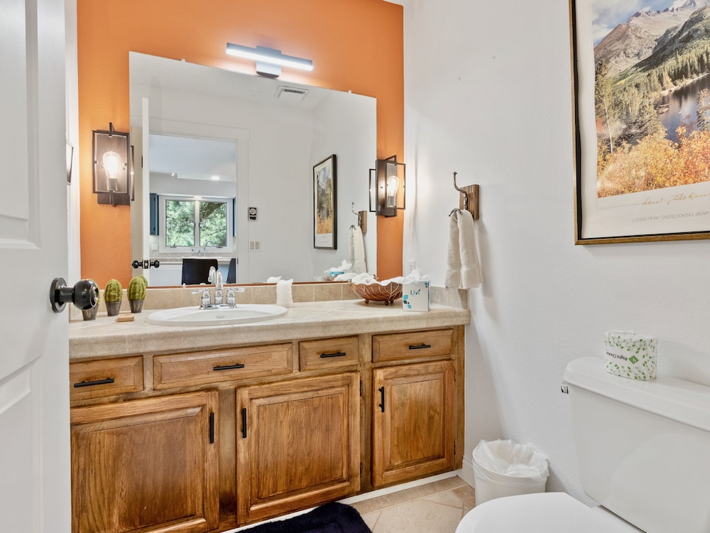 Fra denne feriebolig i Estes Park (Windcliff Estates) er der kun 15 minutters kørsel til Rocky Mountain Nationalpark og The Stanley Hotel. Dette feriested med golffaciliteter ligger 4 km fra Murphey's Mountain Park og 6,5 km fra Beaver Meadows Besøgscenter. Find dig til rette i denne feriebolig, som har et køkken med både et køleskab og en ovn. Der er gratis Wi-Fi, så du altid kan komme på nettet, mens kabelkanaler sørger for underholdningen. Faciliteter inkluderer blandt andet en mikrobølgeovn og en kaffe/temaskine. De viste afstande er afrundet til nærmeste 0,1 kilometer.