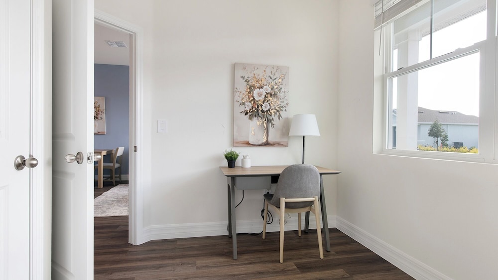 Med et ophold ved denne lejlighed i Kissimmee er du kun 15 minutters kørsel fra ChampionsGate Golf Club og Flamingo Crossings Town Center. Denne lejlighed ligger 13,9 km fra Walt Disney World® Resort og 16,6 km fra Disney's Animal Kingdom® Theme Park. Find dig til rette i denne lejlighed med individuelt design. Der er også et køkken med både et køleskab og en ovn. Der er en privat hawaiiansk terrasse. Der er et tv med digitale kanaler, som sørger for underholdningen. Faciliteter inkluderer blandt andet et skrivebord og en mikrobølgeovn. Der er rengøring efter anmodning. De viste afstande er afrundet til nærmeste 0,1 kilometer.