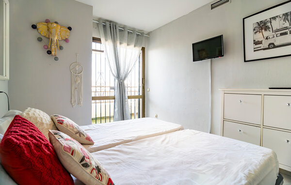 Denne indbydende ferielejlighed ligger nogle få skridt fra sandstranden og tilbyder et hyggeligt hjem, hvis I ønsker at bytte den daglige trummerum ud med afslappende dage ved havet, uanset om I rejser som par eller som en lille familie. Tilbered lækre retter her, planlæg jeres aktiviteter ved spisebordet, og læn jer tilbage i sofaen med en film efter en lang dag i solen.