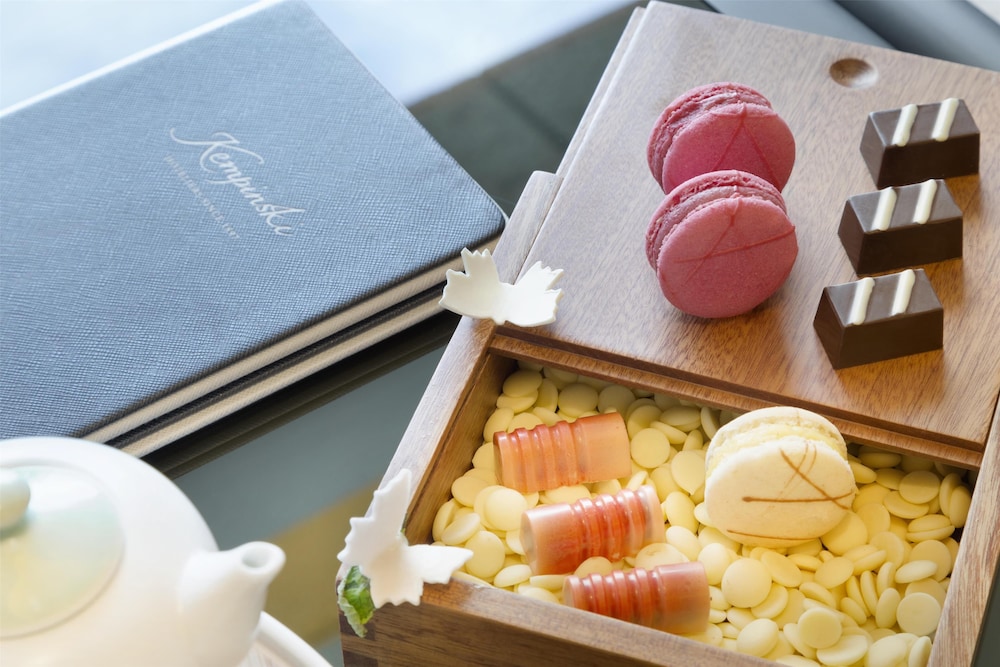 Fra Kempinski Hotel Fuzhou i Fuzhou (Jin'an Distrikt) er der kun 5 minutters kørsel til Taihe Plaza og Fuzhou Varme Kildepark. Dette hotel med familievenlig profil ligger 3,7 km fra Fuzhou Kaiyuan Tempel og 4,6 km fra Ta Lane. Føl dig hjemme i et af de 327 værelser, der indeholder minibar og LCD-tv. Din seng er udstyret med Tempur-Pedic-madras og premium-sengetøj. Gratis internetforbindelse via kabel og Wi-Fi er til rådighed. Værelset har et delvist åbent badeværelse med separat badekar og bruser samt brusehoved med spredningseffekt og gratis toiletartikler. De viste afstande er afrundet til nærmeste 0,1 kilometer.