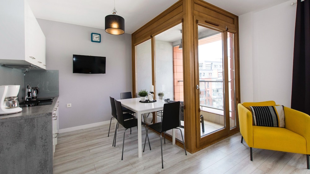 Med et ophold ved City Center Apartments SPA & Wellness by Apartmore har du en base i hjertet af Gdańsk, kun 10 minutters gang fra Laznia Center For Moderne Kunst og Długie Pobrzeże. Dette lejlighedshotel med spa ligger 0,7 km fra Long Market og 0,7 km fra Royal Route. Føl dig hjemme i et af de 10 værelser, der er indrettet med individuelt design, og som desuden indeholder køkken med køleskab og ovn. Der tilbydes et fladskærms-tv med kabelkanaler som underholdning, og med gratis Wi-Fi kan du altid komme på nettet. Faciliteter inkluderer separate siddeområder og mikrobølgeovne, og rengøring udføres efter anmodning. De viste afstande er afrundet til nærmeste 0,1 kilometer.