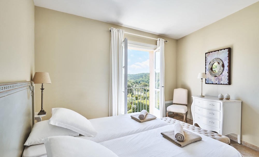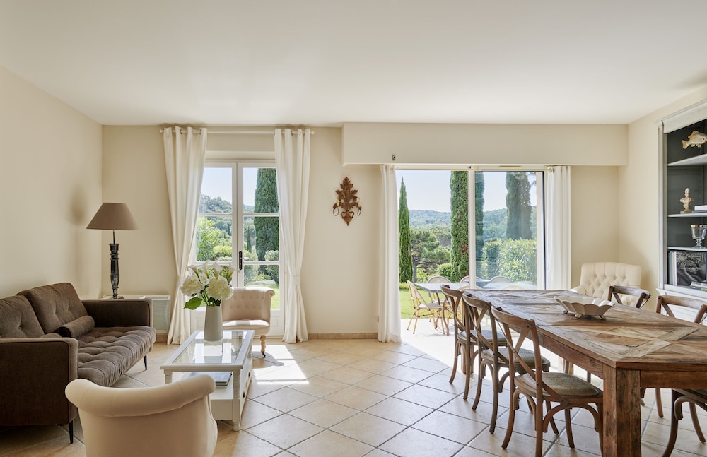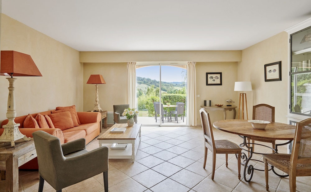 Golf Resort & Country Club Saint-Tropez i Gassin ligger kun 10 minutters kørsel fra Grimaud Havn og Azur Park. Dette hotel med golffaciliteter ligger 6,2 km fra Saint Tropez og 6,6 km fra Place des Lices. Føl dig hjemme i et af de 14 værelser, der indeholder køkken med køleskab/fryser i fuld størrelse og ovn. Med gratis Wi-Fi kan du altid komme på nettet. Faciliteter inkluderer pengeskabe og mikrobølgeovne, og rengøring udføres ugentligt. De viste afstande er afrundet til nærmeste 0,1 kilometer.
