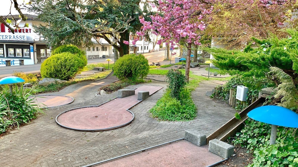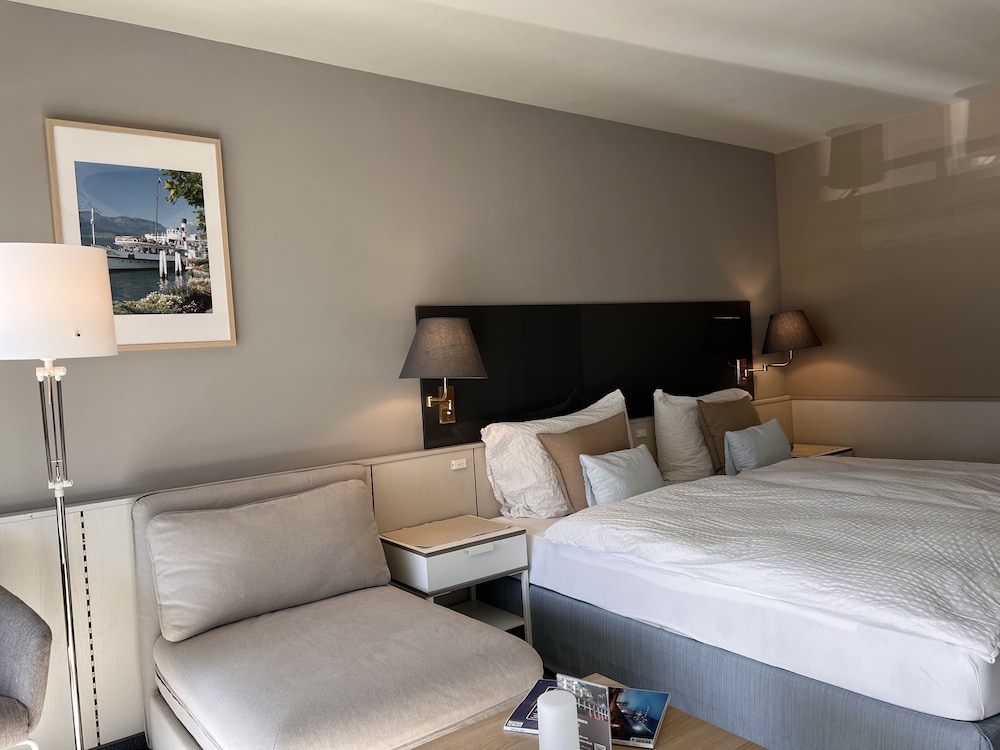 Med et ophold ved Seehotel Riviera at Lake Lucerne har du en base i hjertet af Gersau, kun få skridt fra Lokalhistorisk museum i det gamle rådhus og St. Marzellus kirke. Dette hotel ligger 0,3 km fra Gersau Lakeside Terrace og 5,7 km fra Seilbahn Brunnen Urmiberg. Du vil helt sikkert føle dig hjemme i et af stedets 28 værelser. Med Wi-Fi (tillægsgebyr) kan du altid komme på nettet. Badeværelserne har badekar eller bruser og hårtørrer. Faciliteterne inkluderer pengeskabe og skriveborde. De viste afstande er afrundet til nærmeste 0,1 kilometer.