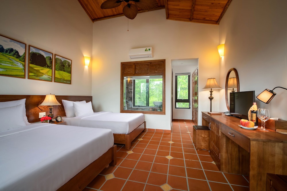 Bai Dinh Garden Resort & Spa Ninh Binh ligger i Gia Vien, blot 1 minutters kørsel fra Bai Dinh Tempelkompleks og 7 minutters kørsel fra Bai Dinh Pagode. Dette hotel med spa ligger 3,1 km fra Trang An Sceniske Landskab og 8,5 km fra Hoa Lu Gamle Hovedstad. Føl dig hjemme i et af de 22 aircondition-afkølede værelser, der indeholder minibar og smart-tv. Værelserne har privat balkon eller terrasse. Med gratis Wi-Fi kan du altid komme på nettet. Badeværelserne har gratis toiletartikler og bidet. De viste afstande er afrundet til nærmeste 0,1 kilometer.