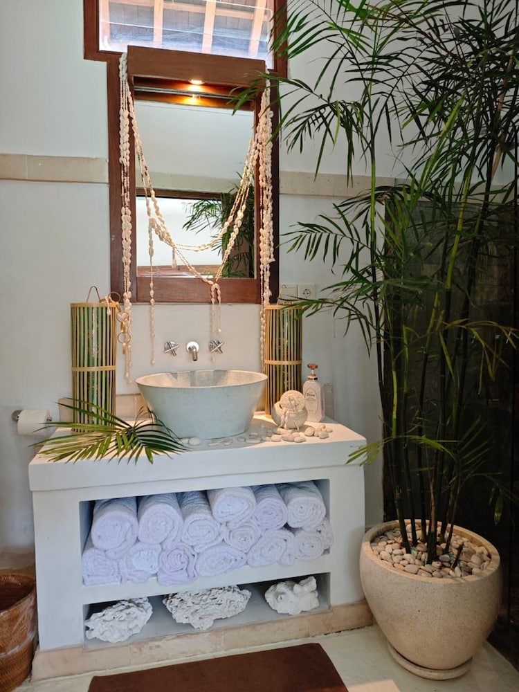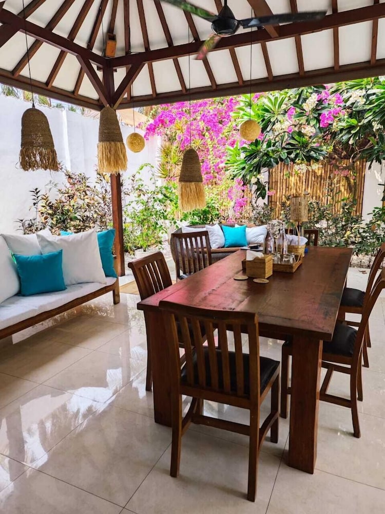 Med et ophold ved VILLA DUNIA i Gili Trawangan er du kun 5 minutters kørsel fra Gili Trawangan Strand og Turtle Shore. Denne villa ligger 1,7 km fra Gili Trawangan Færgeterminal og 2 km fra Gili Trawangan Bakke. Føl dig hjemme i et af de 2 aircondition-afkølede værelser, der desuden indeholder smart-tv. Et tv med kabelkanaler sørger for underholdningen. Værelset har et privat badeværelse med bruser samt brusehoved med spredningseffekt og gratis toiletartikler. Faciliteter inkluderer pengeskabe og elkedler, og rengøring udføres dagligt. De viste afstande er afrundet til nærmeste 0,1 kilometer.