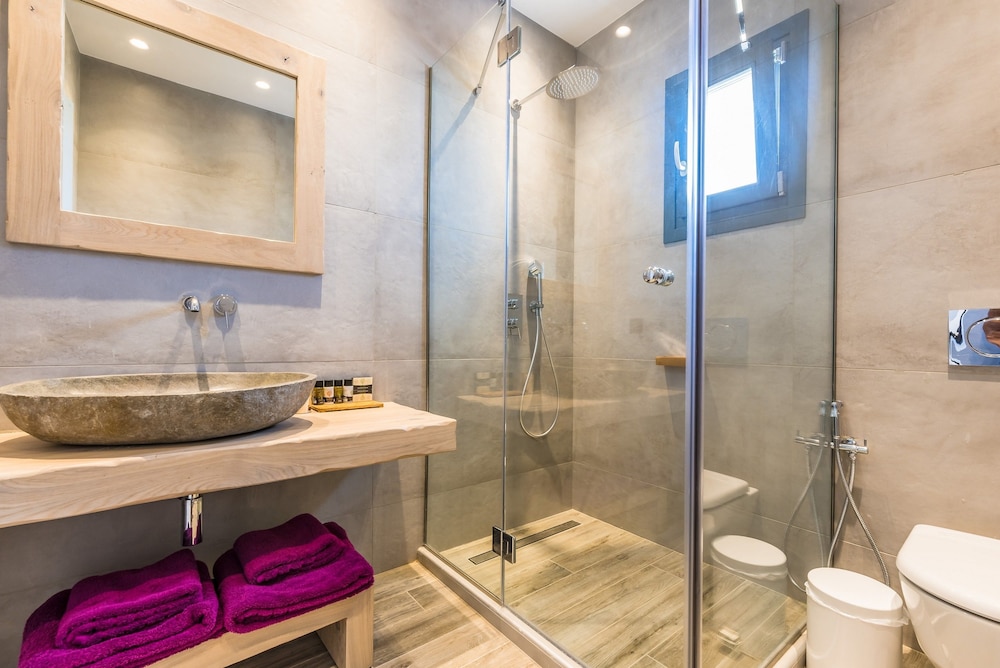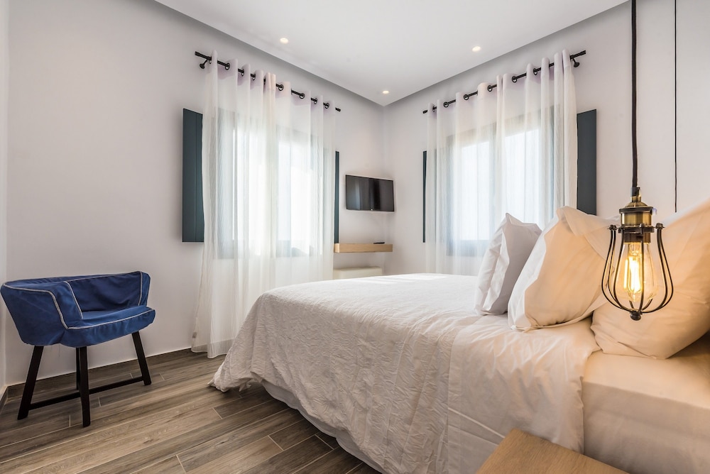 Med et ophold ved Portes Mykonos Suites & Villas har du en central base i Mykonos, kun 5 minutters kørsel fra Mykonos' vindmøller og Mykonos Gamle Havn. Dette hotel med spa ligger 7,7 km fra Mykonos Nye Havn og 2,7 km fra Ornos Strand. Føl dig hjemme i et af de 13 aircondition-afkølede værelser, der indeholder køkken med køleskab/fryser i fuld størrelse og ovn. Værelserne har privat møbleret terrasse. Der er et 43-tommers fladskærms-tv med kabelkanaler, som sørger for underholdningen, og med gratis Wi-Fi kan du altid komme på nettet. Faciliteter inkluderer telefoner samt pengeskabe med plads til bærbar computer og skriveborde. De viste afstande er afrundet til nærmeste 0,1 kilometer.