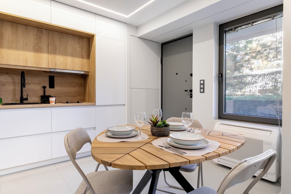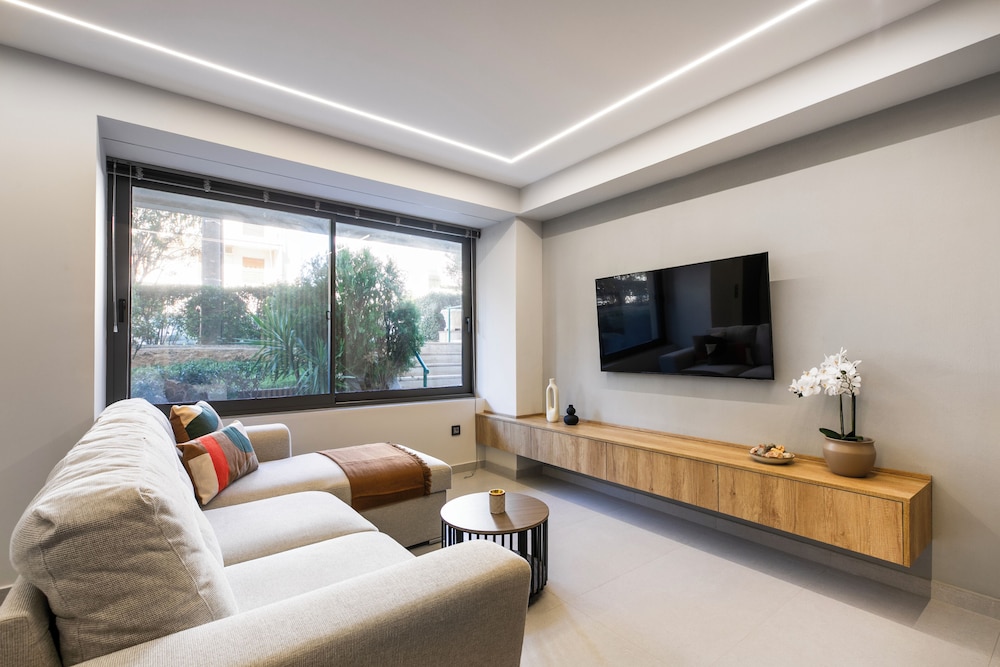 Overnatter du ved denne lejlighed, som ligger ved siden af en golfbane i Glyfada, er du kun 2 minutters kørsel fra Glyfada Strand og 8 minutters kørsel fra Alimos Marina. Denne lejlighed med golffaciliteter ligger 12,8 km fra Acropolis og 13 km fra Syntagma-pladsen. Find dig til rette i denne lejlighed med individuelt design. Der er også et køkken med både et køleskab/fryser i fuld størrelse og en ovn. Din seng har egyptiske bomuldslagner. Der er også en sovesofa (enkeltseng). Der er et 50-tommers smart-tv med Netflix, som sørger for underholdningen, samt gratis Wi-Fi. Faciliteter inkluderer blandt andet et seperat siddeområde og en mikrobølgeovn. De viste afstande er afrundet til nærmeste 0,1 kilometer.