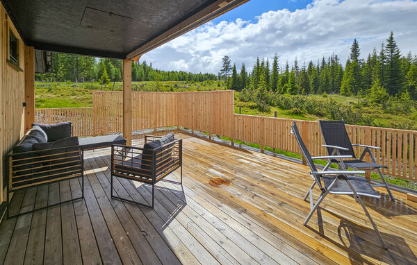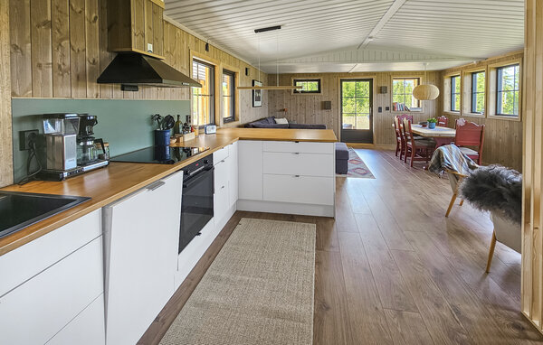 Tag en pause fra hverdagen og glæd jer til årets ferie med familien i dette charmerende træhus. Indretningen fremtræder varmt og rustikt med velholdte træpaneler, gode møbler og mange sprossede vinduer, der giver dejlige lysindfald og en mageløs udsigt til omgivelserne. Tænd op i pejsen, når vinden piber, og tilbered et lækkert måltid mad i det veludstyrede køkken. Efter aftensmaden kan I smide en god film på tv'et eller snuppe en tur i badekarret, mens I lægger planer for de kommende dage.