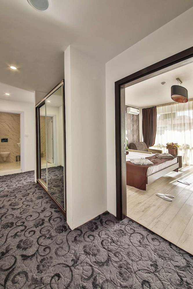 Med et ophold ved Prestige Deluxe Hotel & Aquapark Club - All Inclusive i Varna (Primorski) er du kun 5 minutters gang fra Golden Sands Strand og 13 minutters gang fra Aquapolis. Dette overnatningssted med alt inklusive ligger 2,2 km fra Golden Sands Yacht Port og 2,3 km fra Minigolfbane. Føl dig hjemme i et af de 161 værelser, der indeholder køleskab og fladskærms-tv. Værelserne har privat balkon. Med gratis Wi-Fi kan du altid komme på nettet, og satellitkanaler sørger for underholdningen. Værelset har et privat badeværelse med badekar eller bruser samt gratis toiletartikler og hårtørrer. De viste afstande er afrundet til nærmeste 0,1 kilometer.