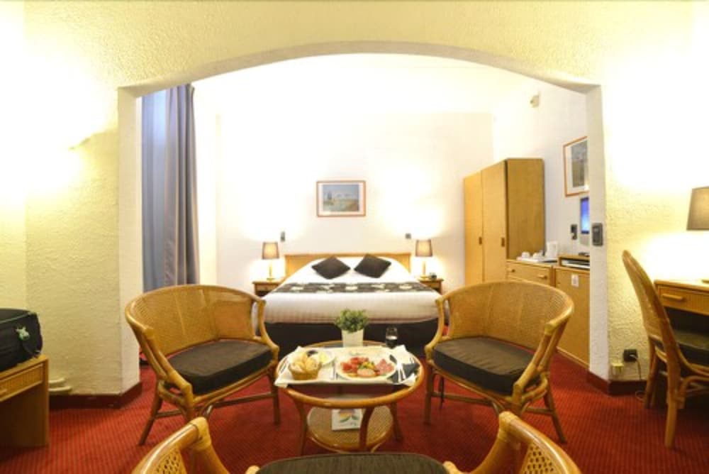 Med et ophold ved Hôtel d'Angleterre Grenoble Hyper-Centre har du en base i hjertet af Grenoble, kun få skridt fra Place Victor Hugo og Sankt Louis Kirke. Dette hotel ligger 0,4 km fra Place Grenette og 0,5 km fra Jardin de Ville. Føl dig hjemme i et af de 60 værelser, der indeholder dvd-afspiller og LCD-tv. Med gratis Wi-Fi kan du altid komme på nettet, og kabelkanaler sørger for underholdningen. Værelset har et privat badeværelse med en kombination af bruser/badekar samt gratis toiletartikler og hårtørrer. Faciliteter inkluderer telefoner samt pengeskabe og skriveborde. De viste afstande er afrundet til nærmeste 0,1 kilometer.