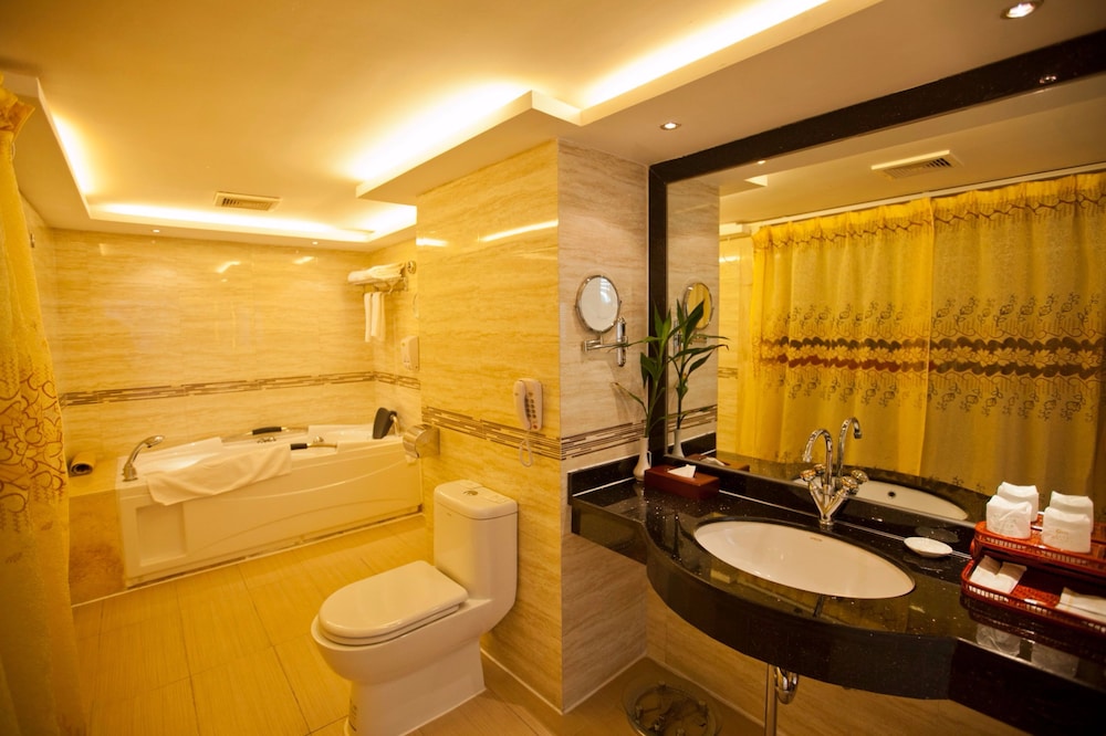 Overnatter du ved YangShuo New Century Hotel, som ligger i et forretningskvarter i Guilin, er du kun 1 minutters gang fra Yangshuo Park og 5 minutters gang fra Sydkinesisk Karst. Dette hotel ligger 2,7 km fra Dream like Lijiang Teater og 3,6 km fra Liu Sanjie Lysshow. Føl dig hjemme i et af de 136 aircondition-afkølede værelser, der indeholder minibar og fladskærms-tv. Med gratis Wi-Fi kan du altid komme på nettet, og kabelkanaler sørger for underholdningen. Værelset har et privat badeværelse med en kombination af bruser/badekar samt gratis toiletartikler og hårtørrer. Faciliteter inkluderer pengeskabe og skriveborde, og rengøring udføres dagligt. De viste afstande er afrundet til nærmeste 0,1 kilometer.