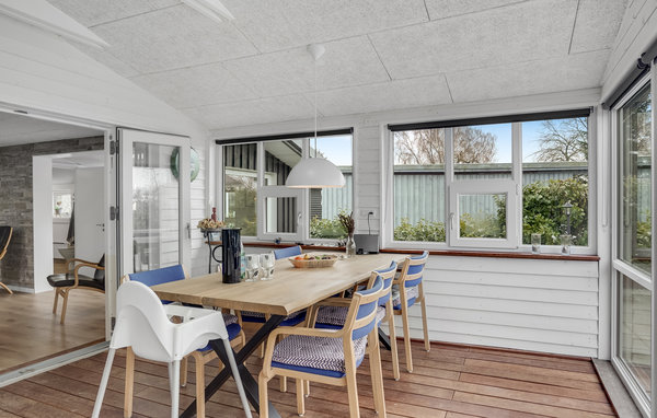 Huset består af 3 soveværelser, 1 badeværelse, en hyggeli opholdsstue med brændeovn og TV samt en lys spisestue og køkken. Derudover finder I et aktivitetsrum i udestuen, hvor det blandt andet er muligt at spille pool.