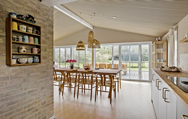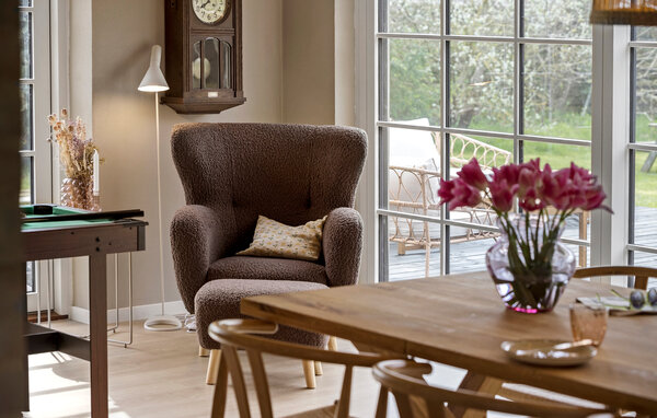 Tag familien under armen og rejs nordenfjords, hvor der venter jer en dejlig base i dette attraktive hus kun få minutters gang fra stranden i Hou. Indvendigt fremtræder huset virkelig flot med højt til loftet, velvalgte materialer og delvist fritlagte murværk, der giver det indre et på én gang rustikt og moderne udtryk og gør det nemt at slappe af med det samme, I ankommer. Hvis vejret bider lidt, kan I fyre op i brændeovnen og nyde dens varme knitren, mens kokkene kræser om livretterne i det veludstyrede køkken, og andre tager et slag pool i stuen. Nyd dagens måltider ved spisebordet med en herlig udsigt til haven, inden I runder aftenen af med brætspil eller en god film til sent.