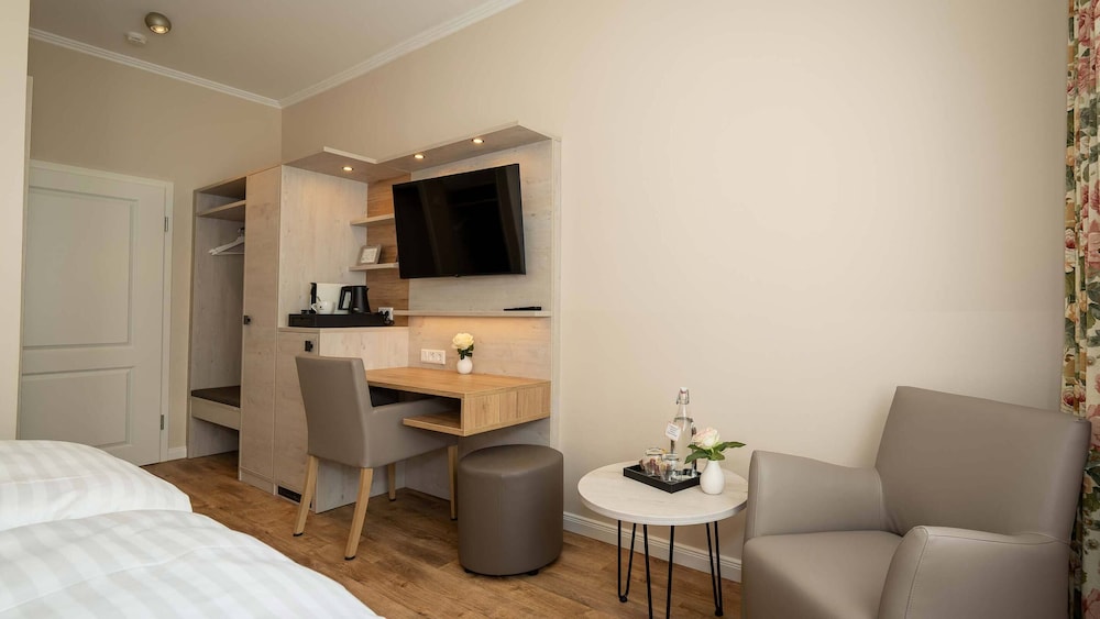 Med et ophold ved Boutique Hotel Rosengarten Hamburg i Hamborg (Wandsbek) er du kun 1 minutters kørsel fra Alstertal-indkøbscentret og 8 minutters kørsel fra Cemetery Ohlsdorf. Dette hotel ligger 15,6 km fra Miniatur Wunderland og 12,8 km fra Hagenbeck Zoo. Overnat i et af de 12 værelser, der indeholder smart-tv. Din seng har Select Comfort-madras og er udstyret med dundyner og premium-sengetøj. Med gratis Wi-Fi kan du altid komme på nettet, og kabelkanaler sørger for underholdningen. Badeværelserne har bruser, hårtørrer og tandbørster og tandpasta. De viste afstande er afrundet til nærmeste 0,1 kilometer.