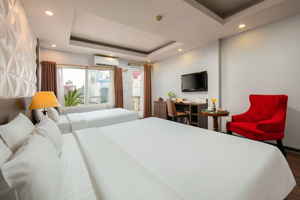 Med et ophold ved Hanoi Diamond King Hotel i centrum af Hanoi er du kun 5 minutters gang fra Hà Nội Gammel bydel Natmarked og en 6 minutters gåtur fra Hoan Kiem-søen. Dette hotel ligger 1 km fra Sankt Josephs Katedral i Hanoi og 1,8 km fra Hanoi-operahuset. Føl dig hjemme i et af de 28 aircondition-afkølede værelser, der desuden indeholder minibar. Med gratis Wi-Fi kan du altid komme på nettet, og kabelkanaler sørger for underholdningen. Værelset har et privat badeværelse med gratis toiletartikler og hårtørrer. Faciliteter inkluderer telefoner samt pengeskabe og skriveborde. De viste afstande er afrundet til nærmeste 0,1 kilometer.