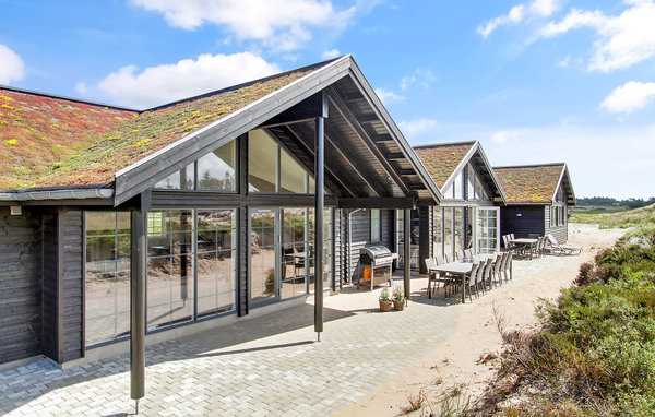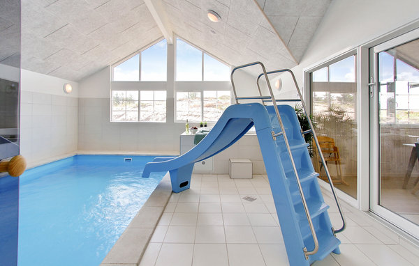 I feriebyen Henne Strand, ligger dette pragtfulde swimmingpoolhus på en kuperet naturgrund. Huset er med sine mange aktivitetsmuligheder den perfekte ramme for en succesfuld ferie året rundt. Feriehuset byder på al tænkelig komfort og luksus, og er bygget op omkring to soveafdelinger med hvert sit badeværelse, som gør det meget velegnet til flere familier, der ønsker at holde ferie sammen. Børnene vil ofte foretrække at sove på den store hems, hvor der er indrettet fire sovepladser. Huset er udstyret med lydisolerede lofter, hvilket gør det meget behageligt at opholde sig i. I husets poolafdeling er der swimmingpool med vandrutsjebane og modstrømsanlæg til svømmetræning. Endvidere er der et seks personers spabad samt sauna og et badeværelse. I det store aktivitetsrum kan I spille både billard/bordtennis, dart, bordfodbold og Playstation4. I baren er der rig mulighed for at mikse spændende drinks, eller servere kolde øl og sodavand fra barens køleskab. Køkkenet er særdeles velindrettet og udstyret med en ekstra stor kogeplade, to opvaskemaskiner samt to køle-/fryseskabe, så der uden problemer kan være mange kokke og køkkenskrivere om den fælles madlavning. Terrassen er sydvendt og helt privat. På den delvis overdækkkede terrasse står en grill til tilberedning af lækre feriemåltider.