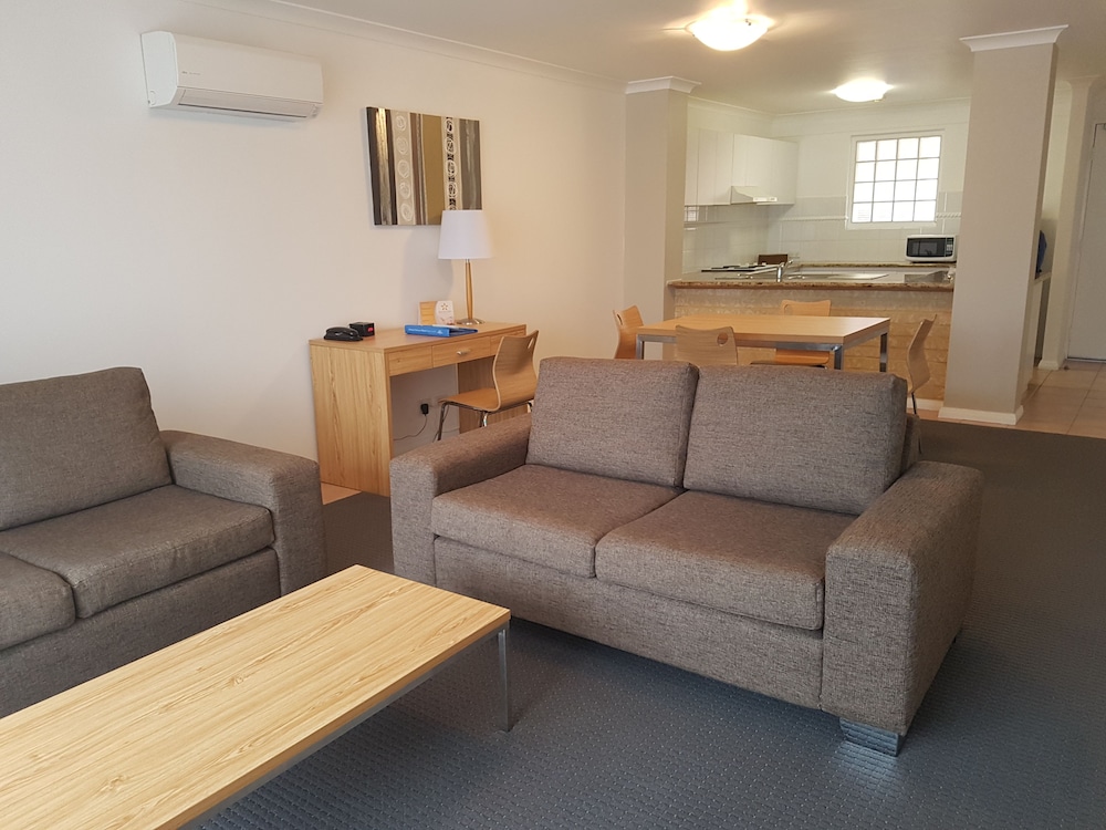Med et ophold ved Hillarys Harbour Resort i Perth (Hillarys) er du kun fem minutters gang fra Hillarys Boat Harbour og Sorrento Quay Boardwalk. Dette lejlighedshotel med 4 stjerner ligger 0,3 km fra Sorrento Beach og 5,5 km fra Mullaloo Beach. Føl dig hjemme i et af de 36 aircondition-afkølede værelser, der indeholder køkken med køleskab/fryser i fuld størrelse og ovn. Værelserne har privat balkon. Der er et 125-centimeters smart-tv samt en iPod-dockingstation til rådighed, og med gratis Wi-Fi kan du altid komme på nettet. Faciliteter inkluderer telefoner samt pengeskabe og skriveborde. De viste afstande er afrundet til nærmeste 0,1 kilometer.