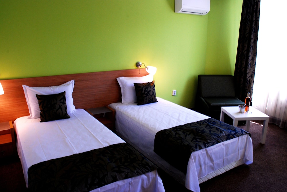 Hotel Green Hisarya - Family ligger i centrum af Hisarja, kun 4 minutters gang fra Arkæologisk Museum. Dette hotel med familievenlig profil ligger 30 km fra Sopot - Mellemstation og 36,8 km fra De Gamle og Urskove i Karpaterne. Føl dig hjemme i et af de 16 aircondition-afkølede værelser, der desuden indeholder plasma-tv. Din seng er udstyret med Select Comfort-madras og dundyner. Med gratis Wi-Fi kan du altid komme på nettet, og kabelkanaler sørger for underholdningen. Der er bruser på badeværelserne. De viste afstande er afrundet til nærmeste 0,1 kilometer.