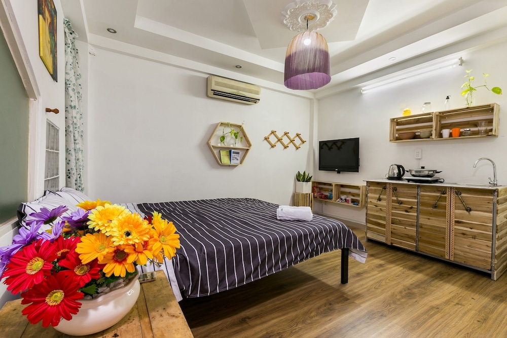 Med et ophold ved 1991 Home Sai Gon har du en base i centrum af Ho Chi Minh-byen, kun få skridt fra Pham Ngu Lao Street og 4 minutters gang fra Bùi Viện Gågade. Dette lejlighedshotel ligger 1,4 km fra Ben Thanh Marked og 1,6 km fra Saigon-pladsen. Føl dig hjemme i et af de 8 aircondition-afkølede værelser, der indeholder tekøkken. Din seng er udstyret med madras af viskoelastisk skum og premium-sengetøj. Værelserne har privat balkon. Der er et 32-tommers LED-tv med digitale kanaler, som sørger for underholdningen, og med gratis Wi-Fi kan du altid komme på nettet. De viste afstande er afrundet til nærmeste 0,1 kilometer.