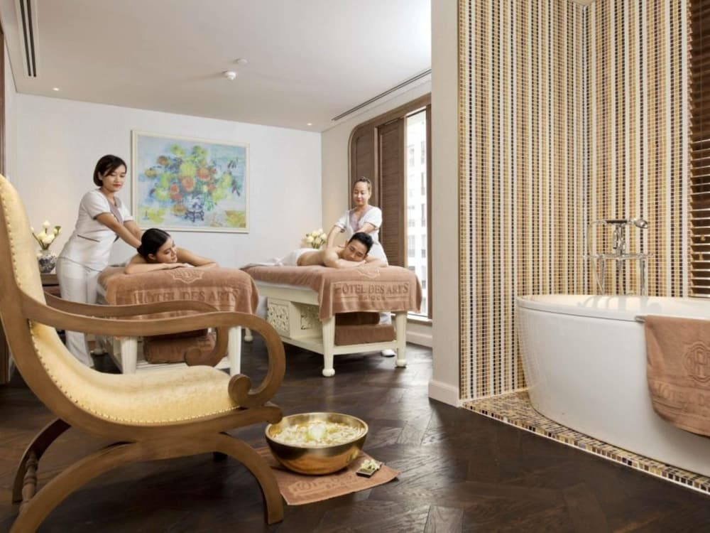 Med et ophold ved Hôtel des Arts Saigon - MGallery Collection har du en base i hjertet af Ho Chi Minh-byen, kun fem minutters gang fra Saigons Notre Dame-basilika og Diamond Plaza. Dette hotel med familievenlig profil ligger 0,6 km fra Saigon Centrale Postkontor og 1 km fra Genforeningspaladset. Føl dig hjemme i et af de 168 aircondition-afkølede værelser, der indeholder minibar og plasma-tv. Med gratis Wi-Fi kan du altid komme på nettet, og satellitkanaler sørger for underholdningen. Værelset har et delvist åbent badeværelse med gratis toiletartikler og hårtørrer. Faciliteter inkluderer telefoner samt pengeskabe og skriveborde. De viste afstande er afrundet til nærmeste 0,1 kilometer.
