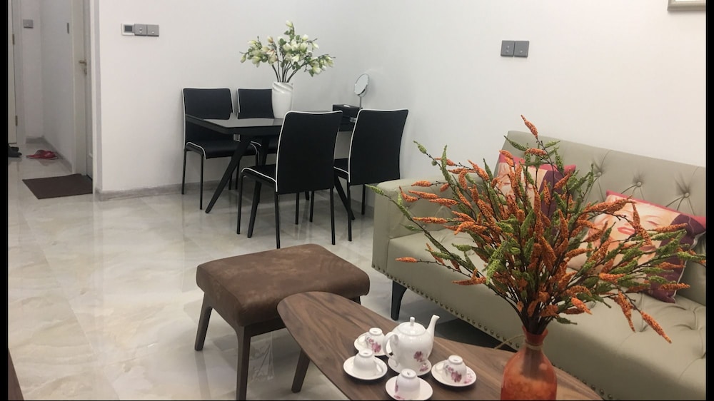 Med et ophold ved Jack Hai Vinhome Apartment har du en base i hjertet af Ho Chi Minh-byen, kun 4 minutters gang fra Landmark 81 og 5 minutters kørsel fra Saigon zoologiske og botaniske have. Dette hotel ligger 5,2 km fra Ben Thanh Marked og 6 km fra Bùi Viện Gågade. Føl dig hjemme i et af de 5 aircondition-afkølede værelser, der indeholder køkken med køleskab og mikrobølgeovn. Værelserne har privat balkon. Der tilbydes et smart-tv med kabelkanaler som underholdning, og med gratis Wi-Fi kan du altid komme på nettet. Faciliteter inkluderer skriveborde og riskogere, og rengøring udføres efter anmodning. De viste afstande er afrundet til nærmeste 0,1 kilometer.