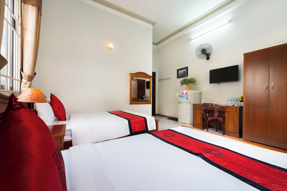 Med et ophold ved Collection O Madam Cuc Hotel i Ho Chi Minh-byen (Distrikt 1) er du kun få skridt fra Bùi Viện Gågade og 3 minutters gang fra Pham Ngu Lao Street. Dette hotel ligger 1,5 km fra Ben Thanh Marked og 1,7 km fra Saigon-pladsen. Føl dig hjemme i et af de 15 aircondition-afkølede værelser, der desuden indeholder fladskærms-tv. Et tv med kabelkanaler sørger for underholdningen. Badeværelserne indeholder bruser med brusehoved med spredningseffekt og gratis toiletartikler. Faciliteterne inkluderer skriveborde og gratis mineralvand på flaske. De viste afstande er afrundet til nærmeste 0,1 kilometer.