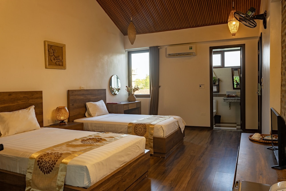 Nan House ligger ved en sø i Hoa Lu, kun 5 minutters kørsel fra Trang An Sceniske Landskab og Thái Vi Tempel. Dette hotel ligger 3,2 km fra Bich Dong-templet og 4,7 km fra Hang Múa. Forkæl dig selv med et ophold i et af de 13 værelser, der er indrettet med individuelt design, og som desuden indeholder private boblebade og fladskærms-tv. Din seng er udstyret med topmadras og egyptiske bomuldslagner. Værelserne har privat møbleret balkon eller terrasse. Med gratis Wi-Fi kan du altid komme på nettet. Værelset har et privat badeværelse, der indeholder dybe badekar og brusehoved med spredningseffekt. De viste afstande er afrundet til nærmeste 0,1 kilometer.