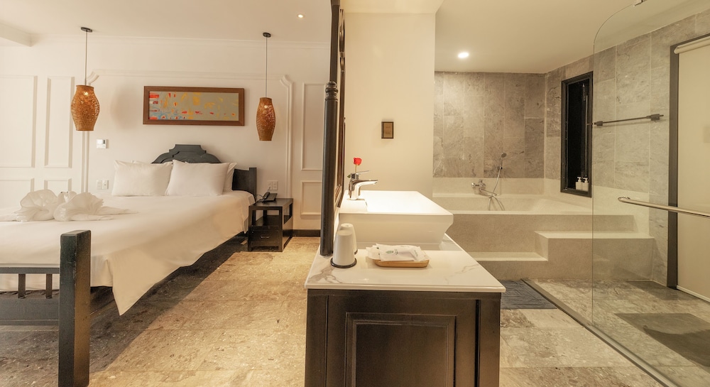 Fra Hoi An Coco River Resort & Spa i Hoi An (Cam Thanh) er der kun 10 minutters kørsel til Hội An Marked og Chùa Cầu. Dette resort med spa ligger 4,4 km fra Cua Dai Strand og 5,9 km fra An Bang-stranden. Føl dig hjemme i et af de 40 aircondition-afkølede værelser, der indeholder minibar og LCD-tv. Værelserne har privat balkon eller terrasse. Med gratis Wi-Fi kan du altid komme på nettet, og satellitkanaler sørger for underholdningen. Værelset har et delvist åbent badeværelse med separat badekar og bruser, dybe badekar og gratis toiletartikler. De viste afstande er afrundet til nærmeste 0,1 kilometer.