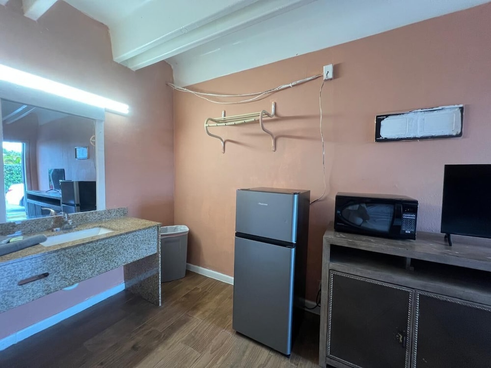 Med et ophold ved Anhinga Motel Homestead Fl i Homestead er du kun 10 minutters gang fra Seminole Theatre og Homestead Station. Dette hotel ligger 15,9 km fra Everglades Nationalpark (og omegn) og 28,8 km fra Zoo Miami. Føl dig hjemme i et af de 15 aircondition-afkølede værelser, der indeholder mikrobølgeovn og smart-tv. Med gratis Wi-Fi kan du altid komme på nettet, og kabelkanaler sørger for underholdningen. Værelset har et privat badeværelse med badekar eller bruser samt gratis toiletartikler og hårtørrer. Faciliteter inkluderer telefoner, rengøring udføres dagligt, og der kan anmodes om strygejern/strygebræt. De viste afstande er afrundet til nærmeste 0,1 kilometer.