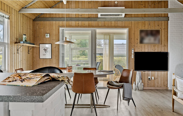 Tag familien under armen og rejs til Pøt Strandby, hvor der en kort gåtur fra stranden venter jer en skøn base i dette indbydende hus. Indretningen fremtræder flot og rustikt med højt til loftet, træpaneler og en brændeovn, der giver varme og det helt rigtige lydtapet til en hyggelig filmaften i sofaen. Nyd godt af udestuen, hvor I uanset vejret kan nyde udsigten til haven, spille brætspil til langt ud på aftenen og runde af med et godt glas vin.